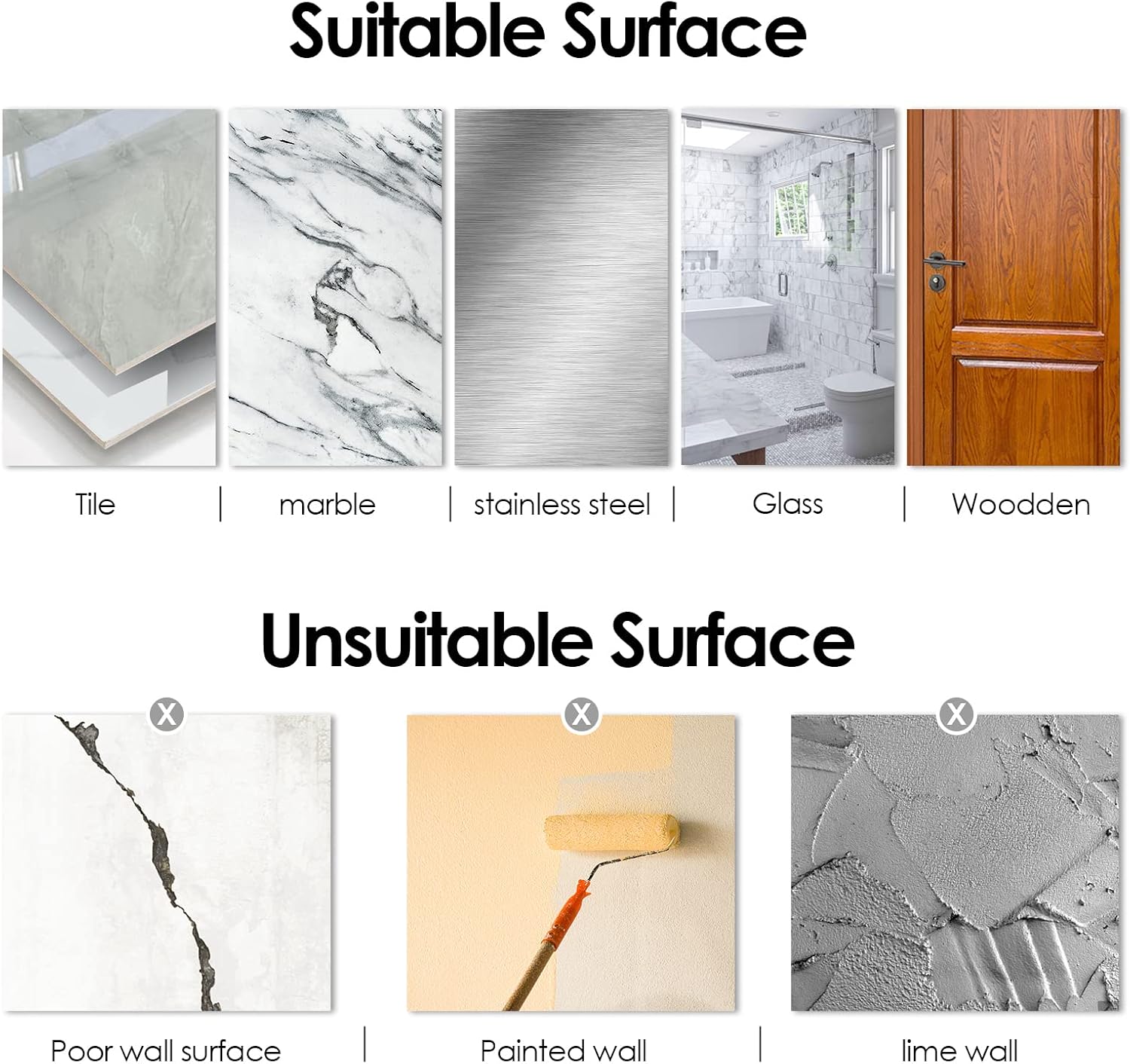 - No Drilling Required β Simple, Secure, and Damage-Free. Forget about the hassle of drilling holes or using nails and screws. Our kitchen hook rack can be installed without any tools, making it perfect for those who want a quick, easy, and damage-free solution. It attaches securely to marble, mirrors, glass, and other smooth surfaces, holding up to 10 lbs. You can have a clutter-free kitchen without the stress of installation