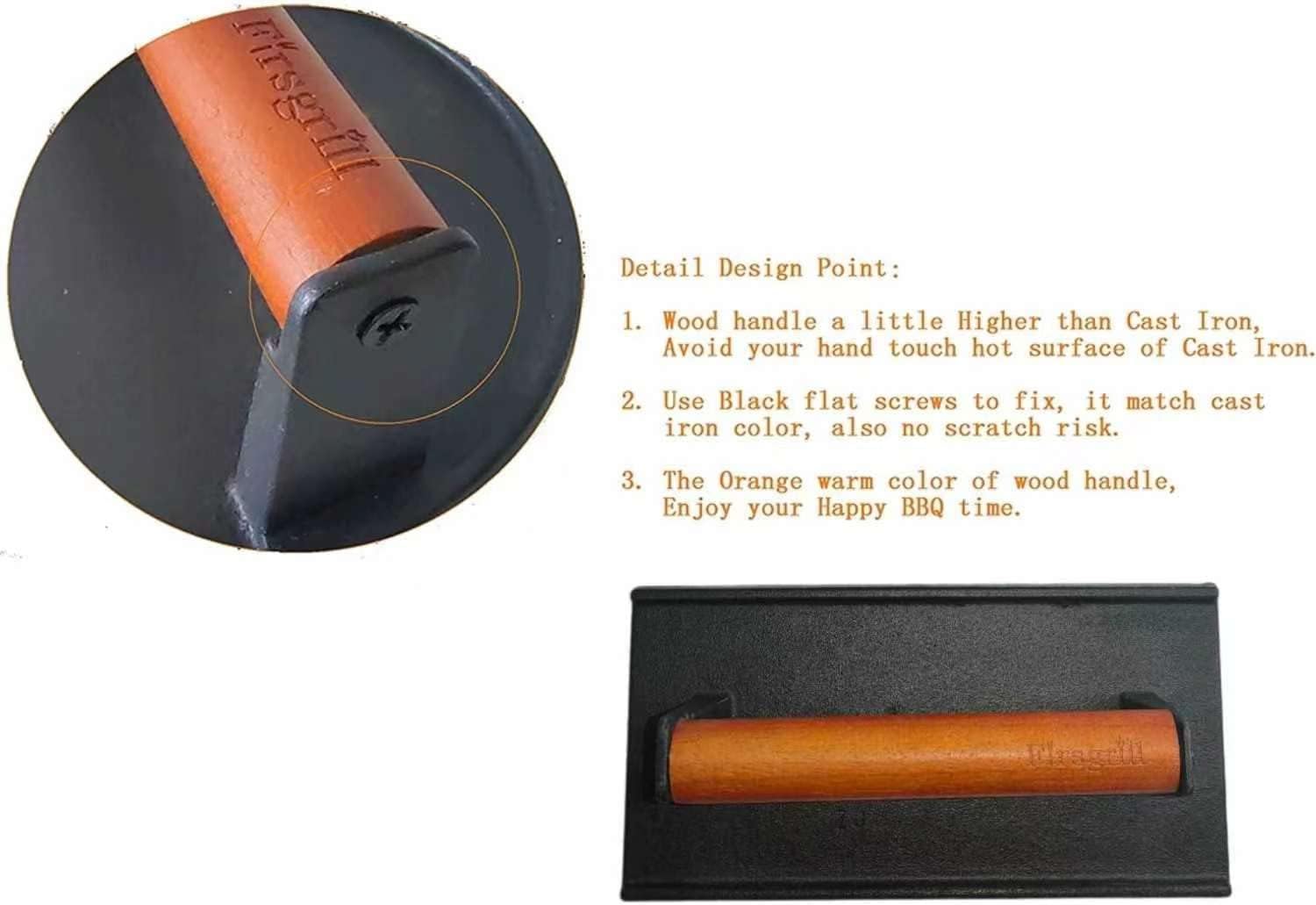 - 【LESS TIME COOKING, MORE TIME EATING】: Got people coming over, and want perfect, consistent bacon, quick? The Firsgrill signature iron grill press is 8.3-inch*4.3-inch and presses down on your favorite thin meats to make them cook faster and more evenly.