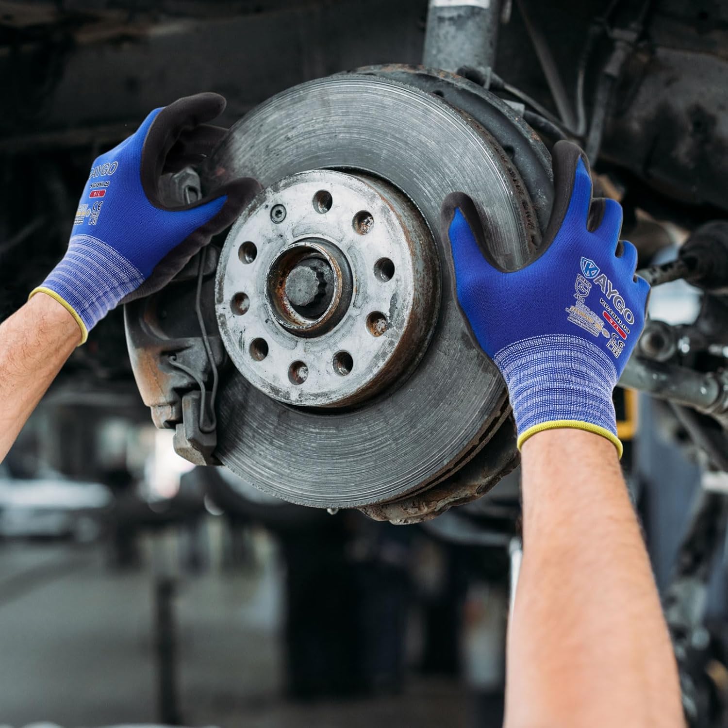 KAYGO Safety Work Gloves MicroFoam Nitrile Coated, 3 Pairs, KG18NB,Seamless Knit Nylon Glove with Black Micro-Foam Nitrile Grip,Ideal for General Purpose,Automotive,Home Improvement,Blue, XL