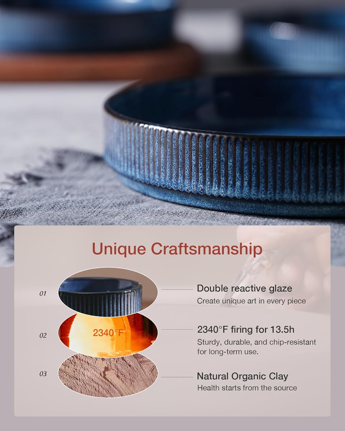 - HANDCRAFTED ELEGANCE: Each of our plate bowls is a testament to the skill and creativity of our artisans, handcrafted and glazed with a DOUBLE REACTIVE GLAZE that brings out a distinct, dreamy color. The hues may differ on your screen, showcasing the one-of-a-kind beauty of our artisanal process