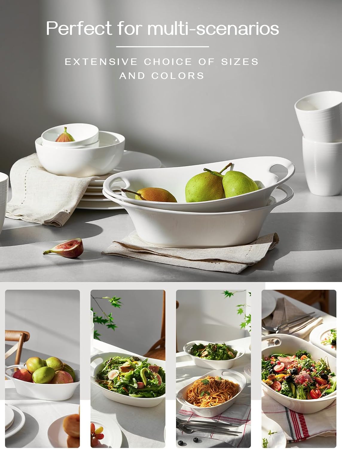 DOWAN Large Serving Bowls with Handles, 60 OZ Oval Serving Platter for Turkey, Fruit Salad Serving Dishes for Entertaining, Porcelain Pasta Bowls for Mother's Day, Parties, Set of 2, Soft White