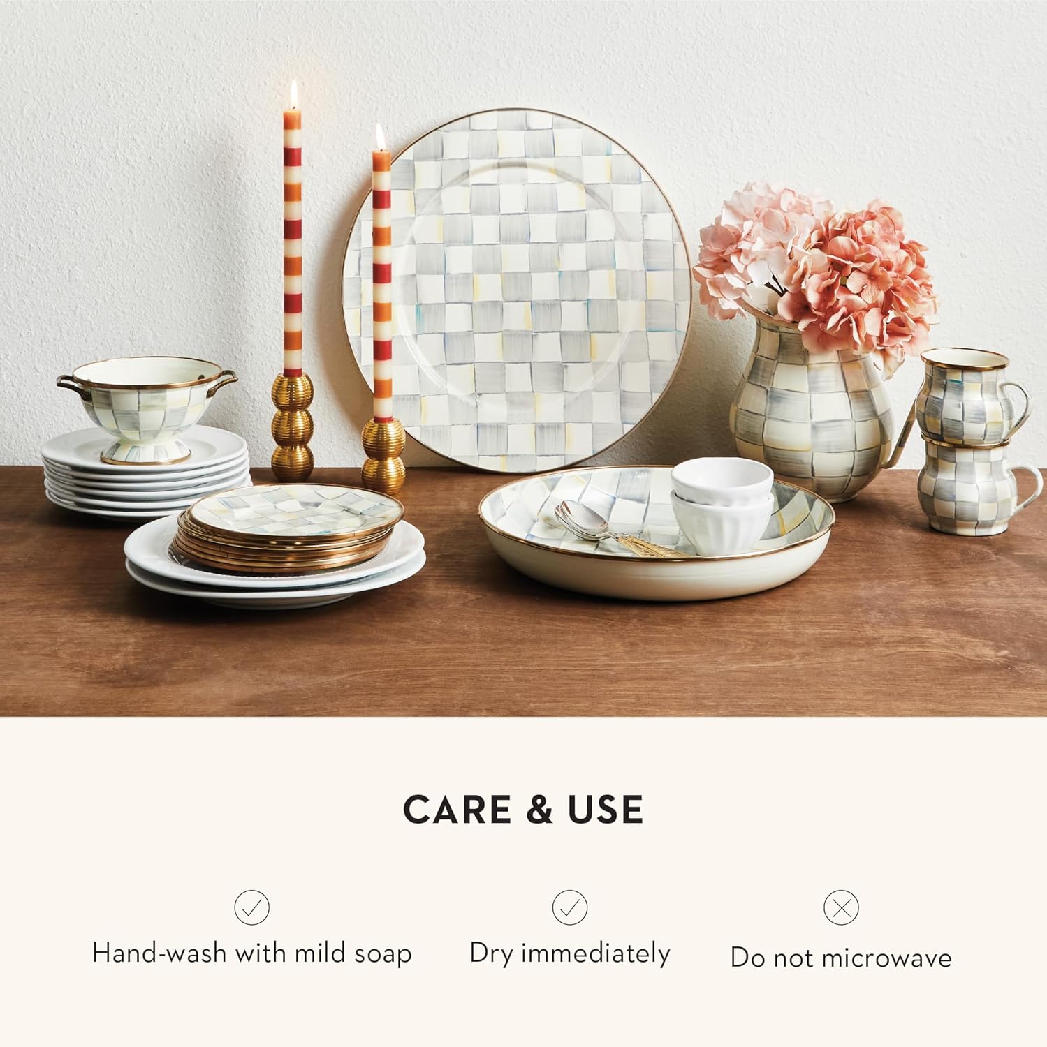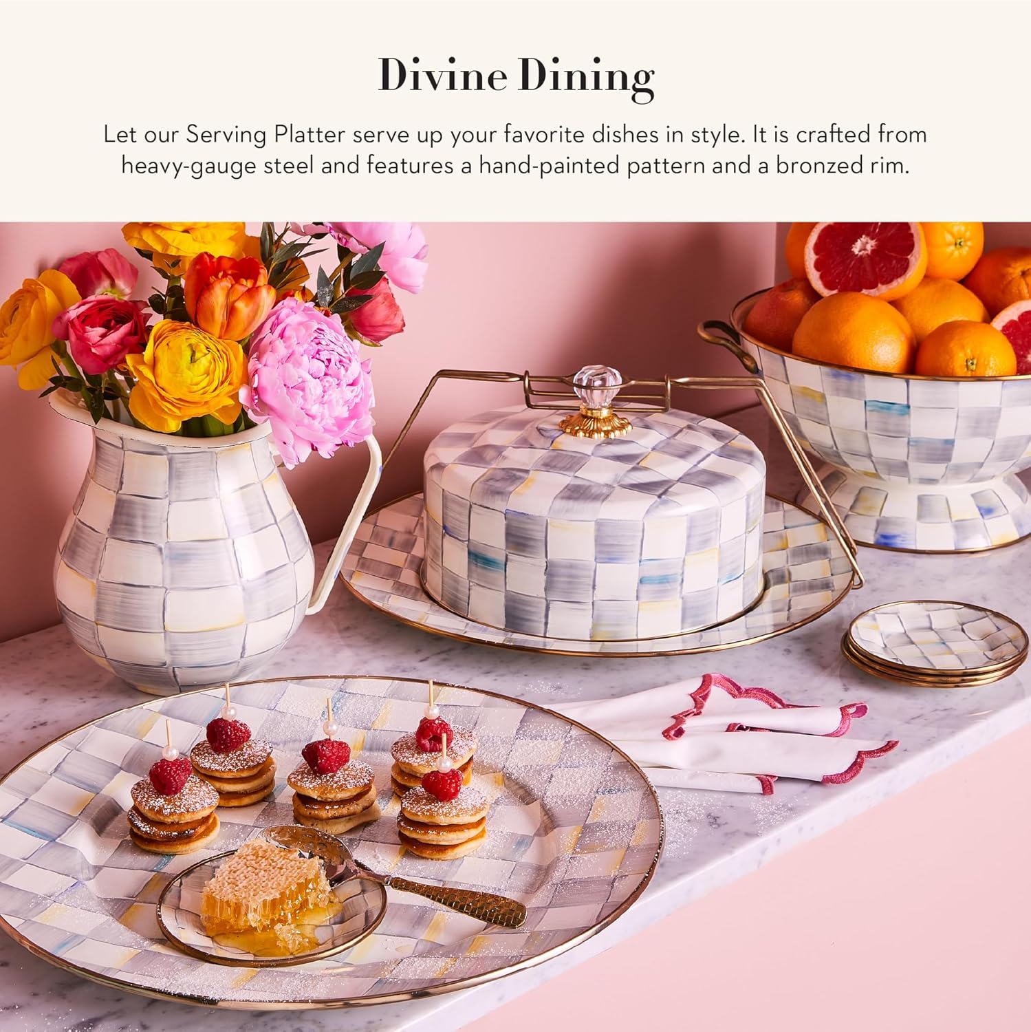 - ELEGANT SERVING PLATE: Serve in style with the Sterling Check Enamel Serving Platter. This subtle decorative platter tray is great for holidays or everyday events and features our neutral gray-and-white color-dragged checks.