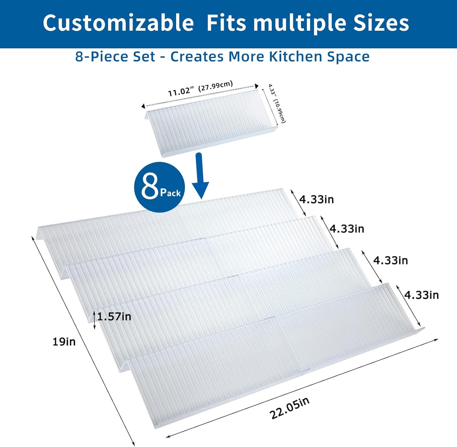 Spice Drawer Organizer, 4 Tier- 8Pack Clear Acrylic Drawer Spice Rack, Spice Organization for Drawer,Spice Rack for Kitchen Drawers (Expands from 11'' to 22'')