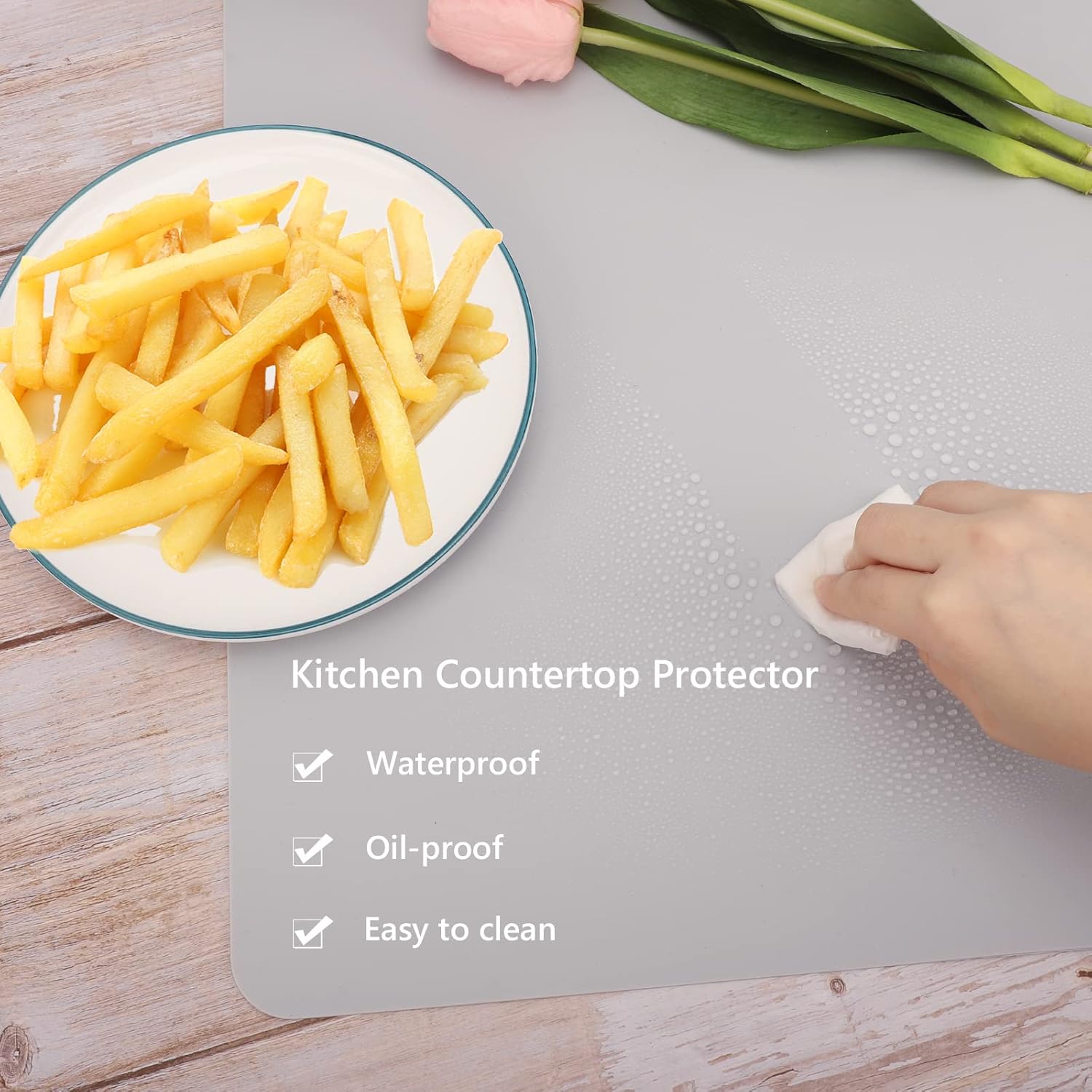 - Durable & Reusable : Counter mats are made of 100 percent food grade silicone, heat resistant between -40¡ãF and 446¡ãF. Nonskid, non-stick, reusable, not easy to deform or tear up.