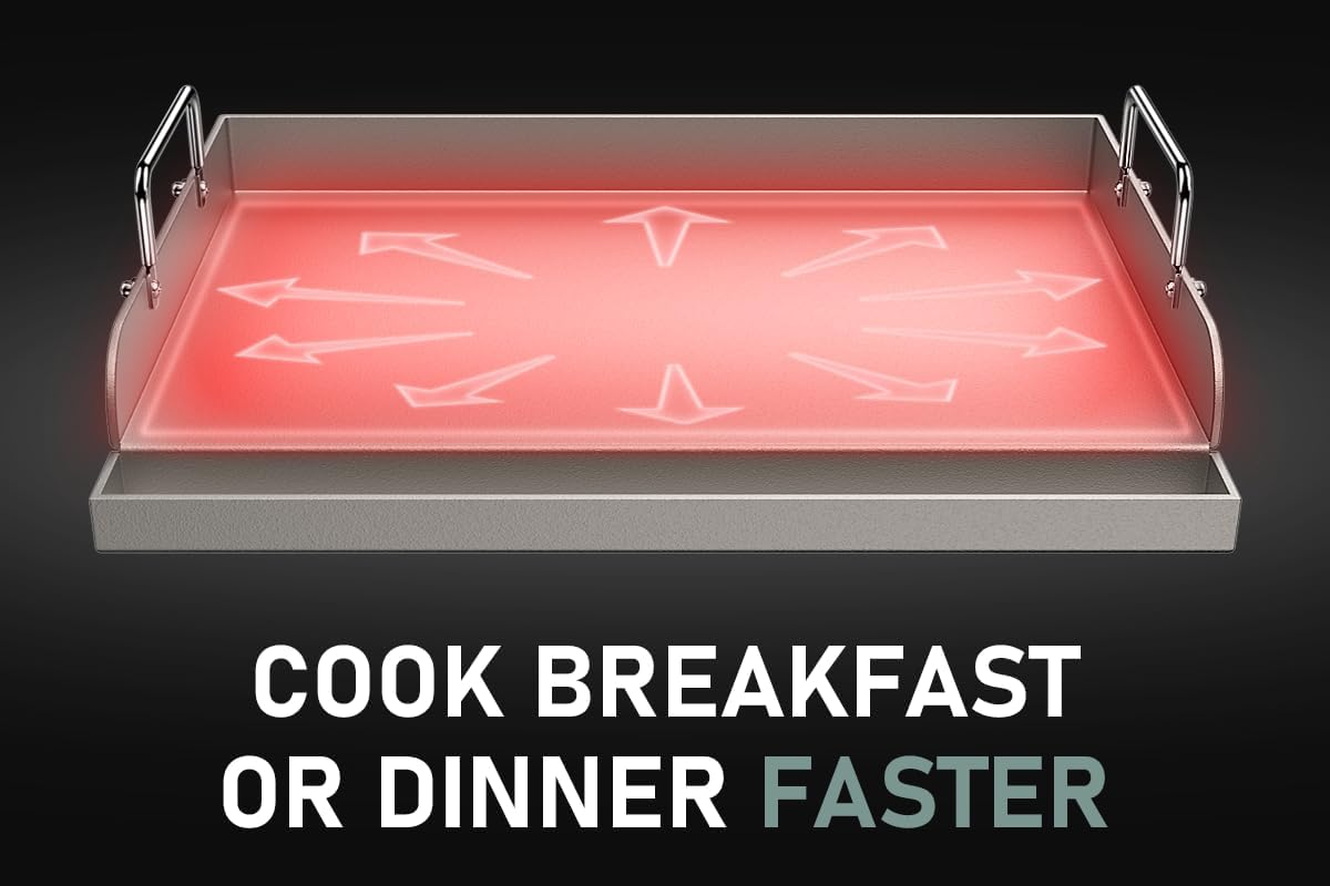 - Versatile Cooking for Every Meal: Turn your grill into a professional-grade outdoor kitchen with this cast iron griddle. From fluffy pancakes to sizzling steaks, it’s perfect for breakfast, lunch, and dinner. Grill bacon, eggs, burgers, seafood, veggies, and more with ease—your culinary creativity has no limits