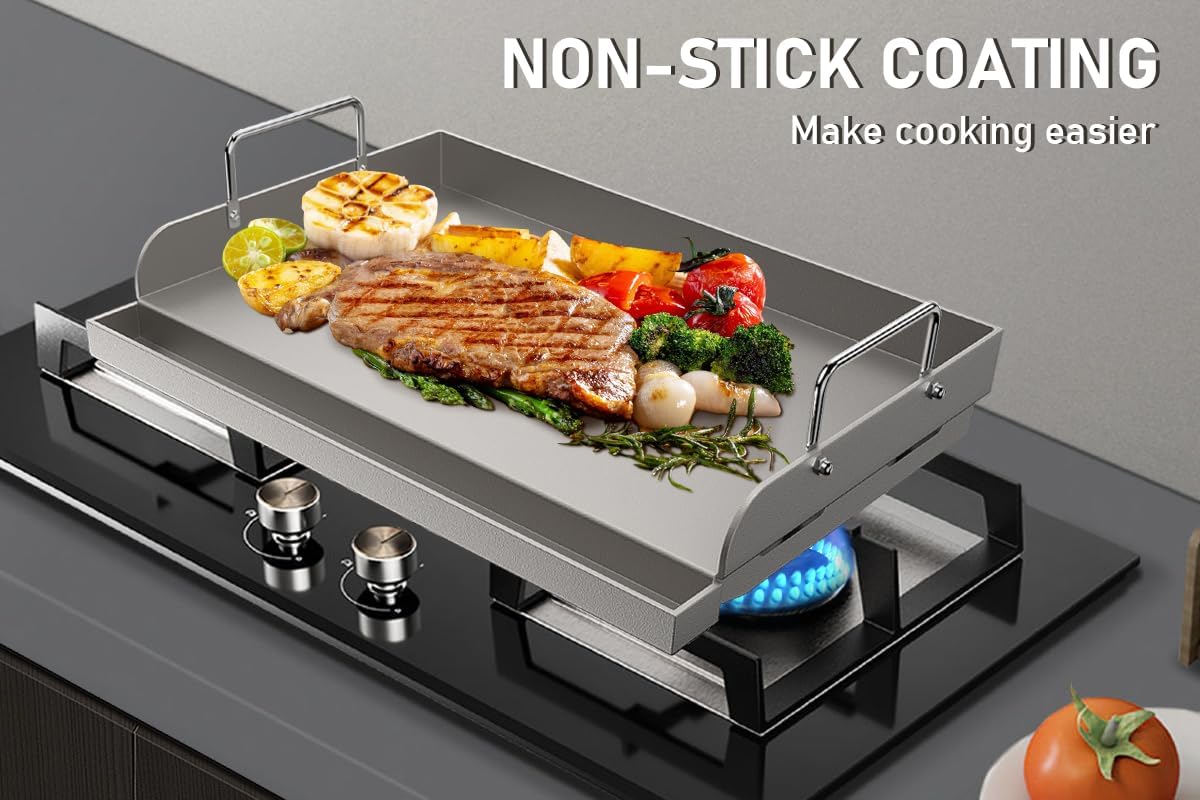 - Safe, Non-Toxic, and Effortless Cleaning: Cook with confidence knowing our coating is completely free harmful chemicals. This eco-friendly, non-toxic surface ensures safe and healthy meals for your family, even at high temperatures. The advanced nonstick finish allows food to slide off effortlessly, reducing the need for excess oil. Cleanup is quick and easy—just wipe it down, and you’re ready for your next grilling session