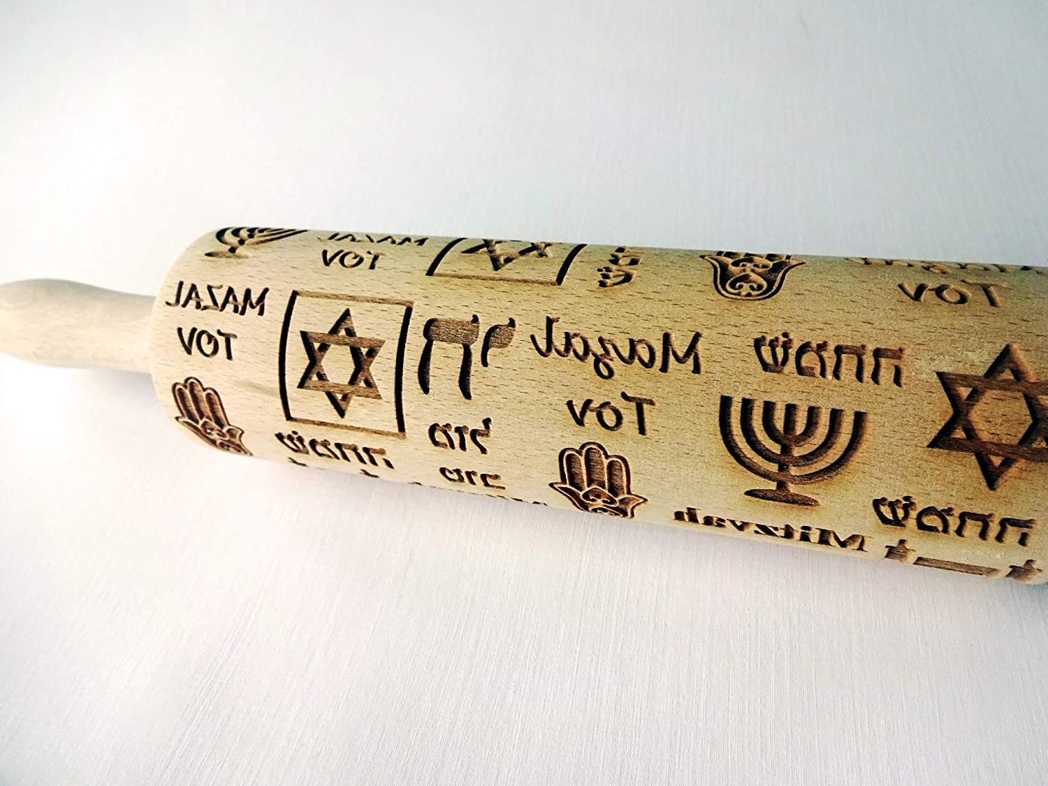 HANUKKAH Rolling pin Jewish holiday symbols laser engraved embossing dough roller for homemade cookies