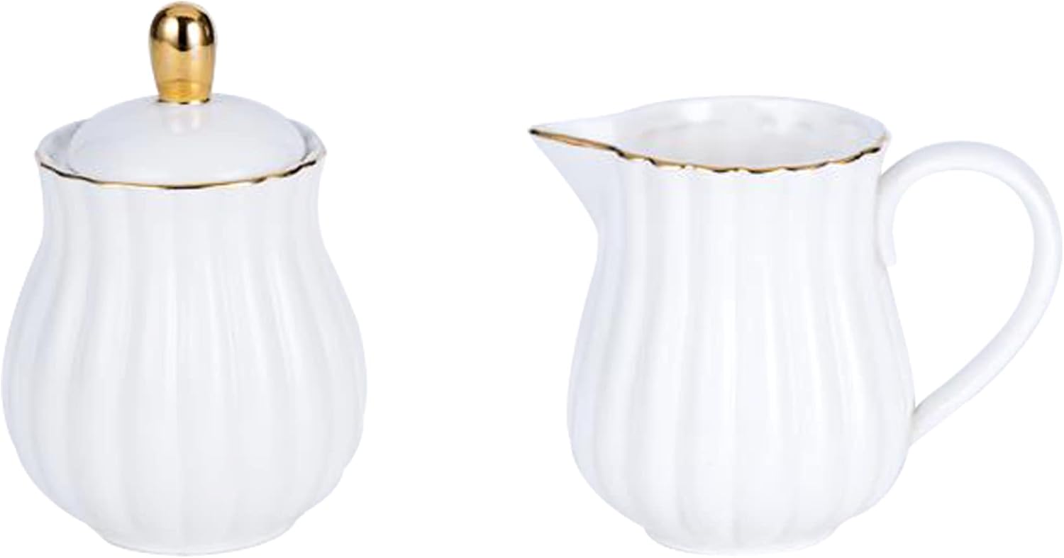 Jusalpha Fine China Pink Teapot and Creamer Sugar Bowl Set, TW (White)