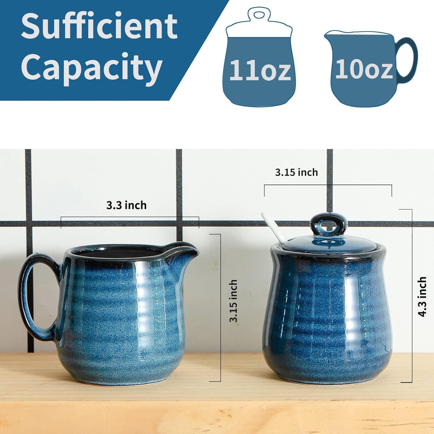 - Unique Color: The color of our sugar and creamer set is unique in the market. The unique navy blue color is a delight to the eye. In addition to being a milk jug, it is also an artifact that can be placed on the dining table,kitchen and coffee bar to enhance the artistic atmosphere of the home. artifact that can be placed on the dining table,kitchen and coffee bar to enhance the artistic atmosphere of the home.