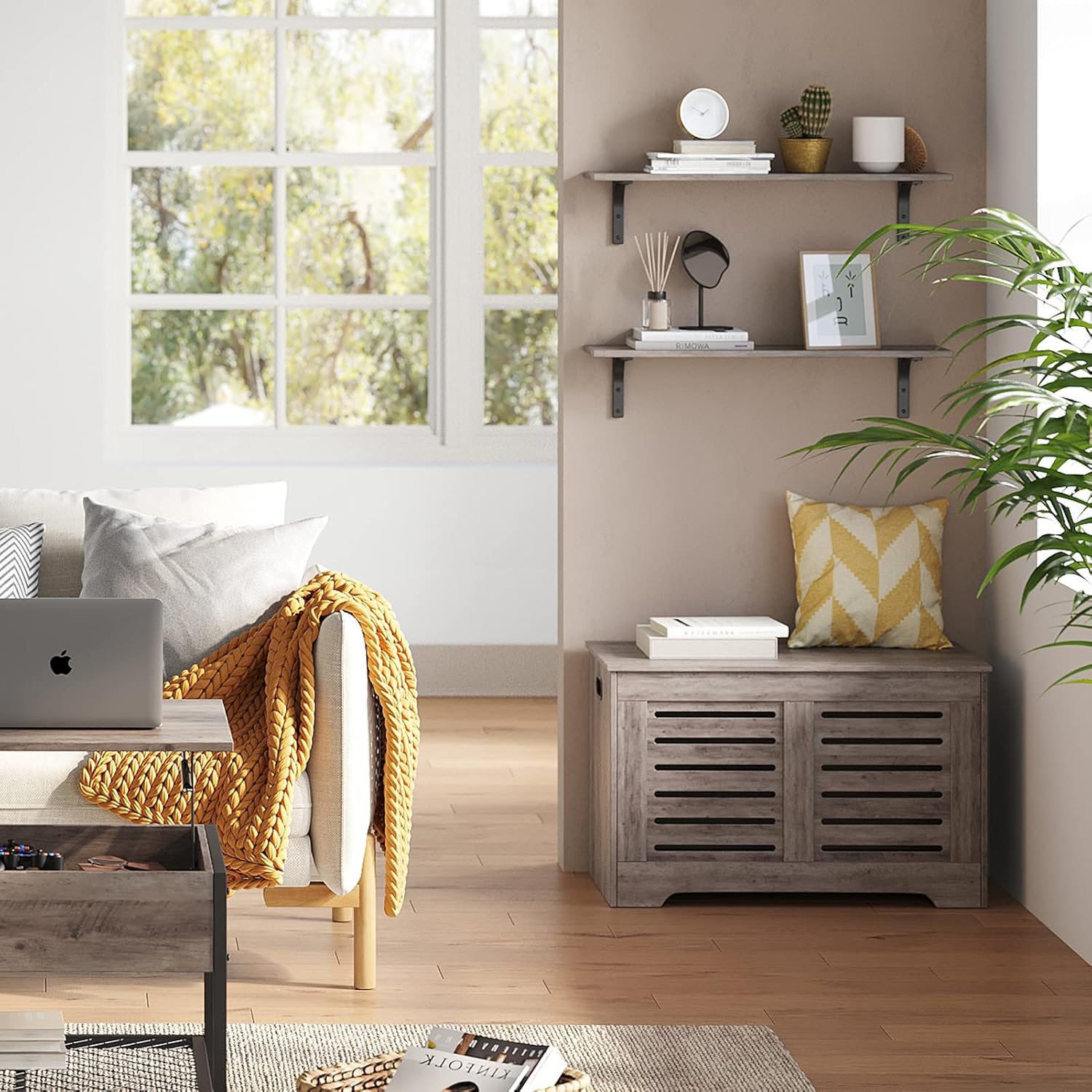 DINZI LVJ Long Wall Shelves, 31.5 Inch Wall Mounted Shelves Set of 2, Easy-to-Install, Wall Storage Ledges with Sturdy Metal Brackets for Living Room, Bathroom, Bedroom, Kitchen, Greige