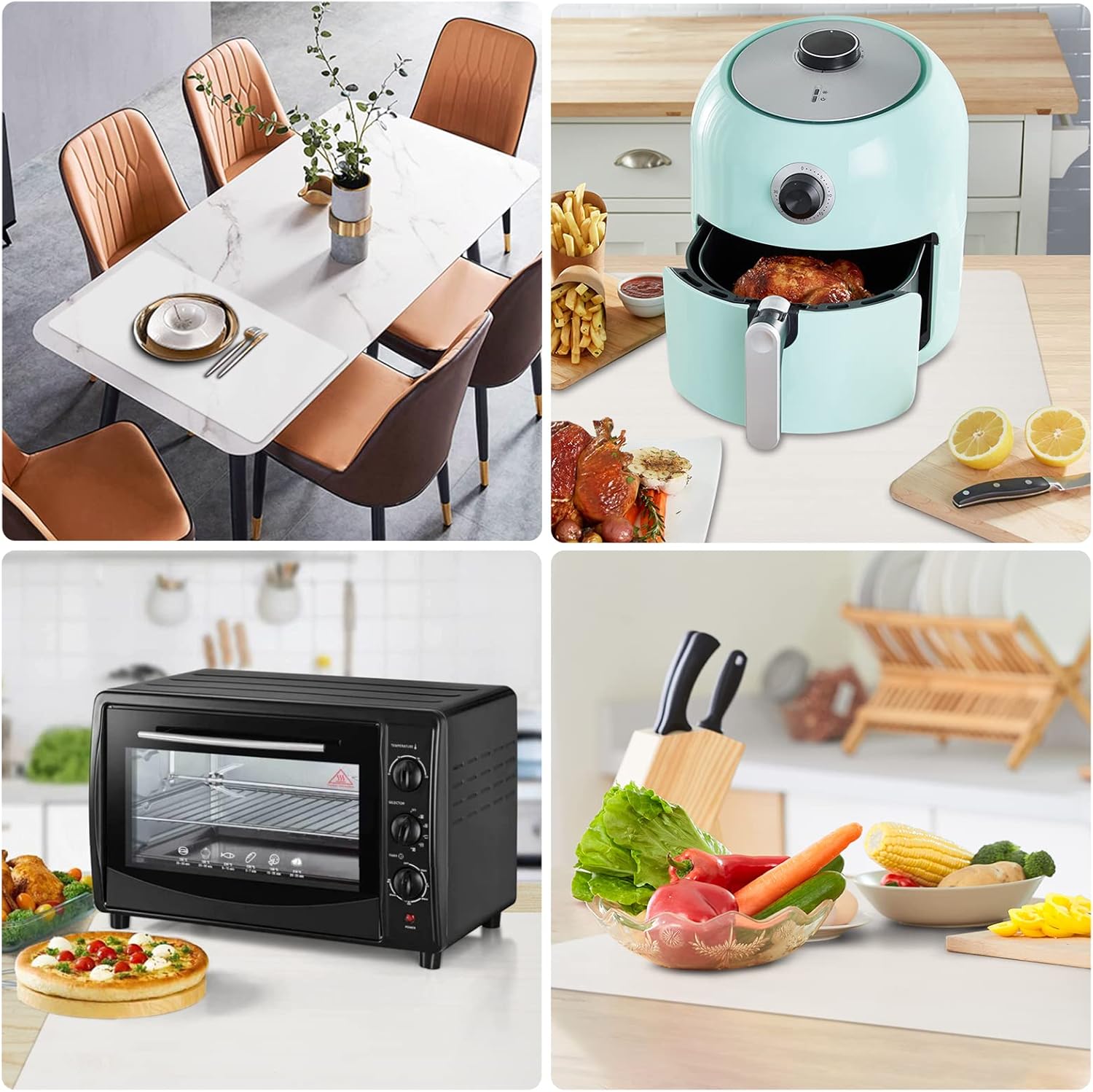 - Extra large silicone mat: Size of 78.7” x 24”, almost can fit most kitchen countertops, dining tables and other workbench. It can be placed under the air fryer, microwave, toaster oven, induction stove, coffee maker to protect the kitchen countertops and other surfaces against spills, scratches, grease, heat, etc. It’s cuttable to fit different sizes and shapes.