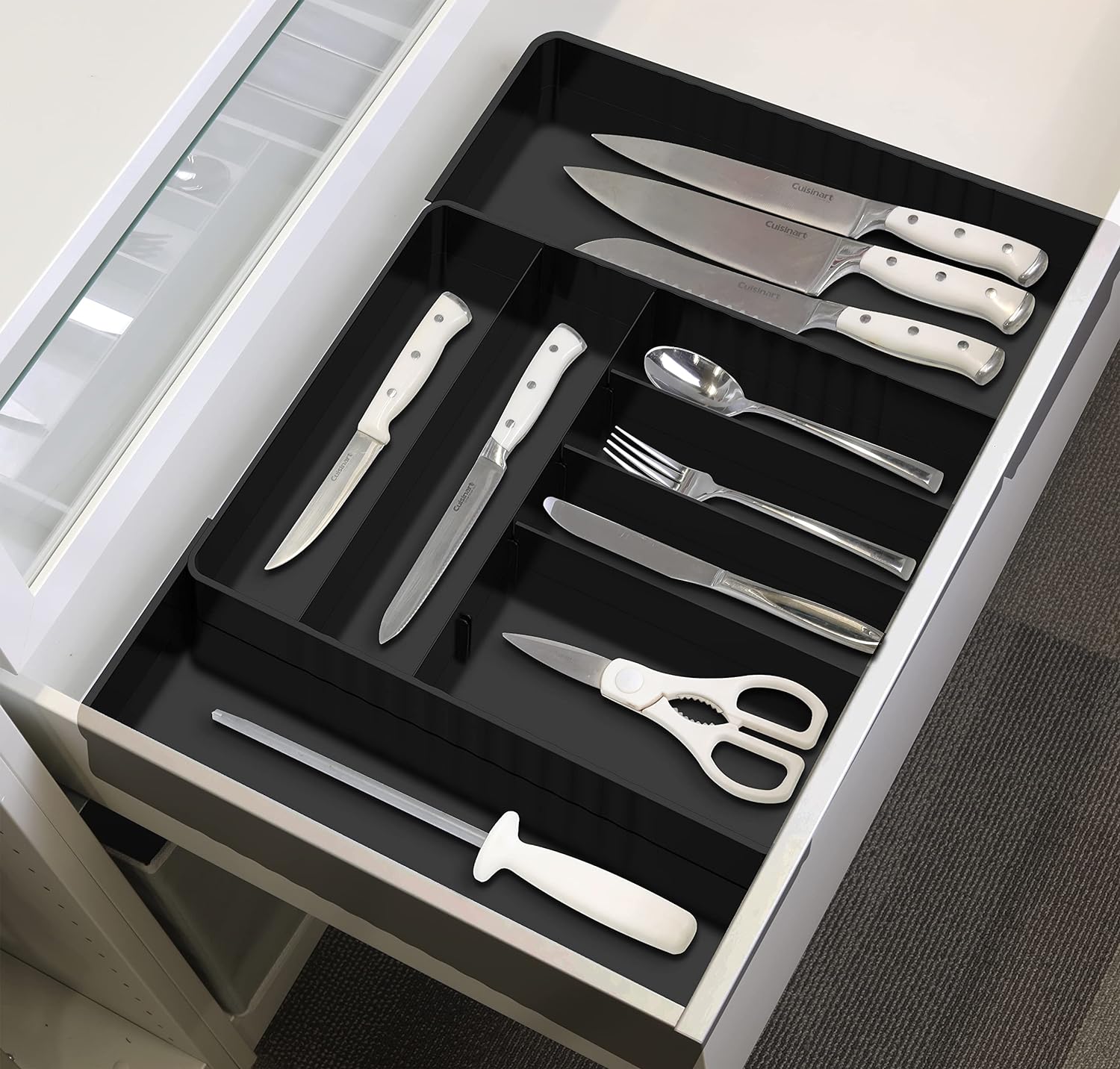 Simple Houseware Expandable Kitchen Drawer Flatware Organizer, Black – Adjustable Cutlery Tray with 9 Compartments for Utensils and Silverware
