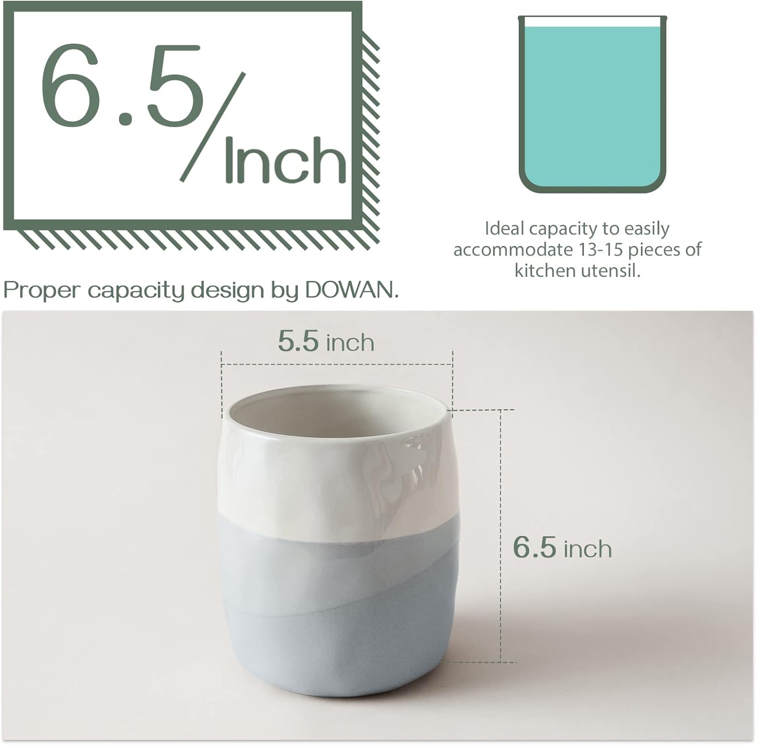DOWAN Utensil Holder, 6.5″ Large Utensil Holder for Kitchen Counter, Ceramic Utensil Crock with Table-Protection Cork Mat, Utensil Organizer Caddy for Tongs, Spoons
