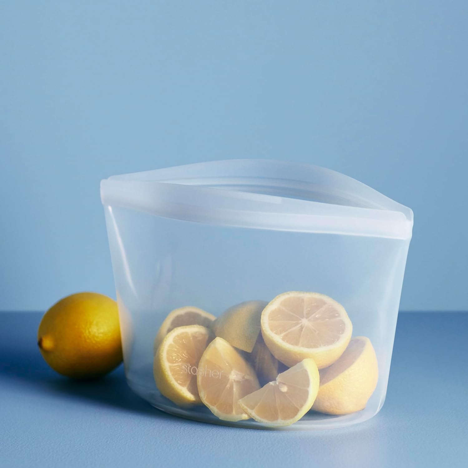 Stasher Premium Silicone Reusable Food Storage Bowl, Clear, Microwave, Sous Vide, Dishwasher, Oven and Freezer Safe, BPA Free, Leak-free, Eco-friendly, 6-Cup Bowl
