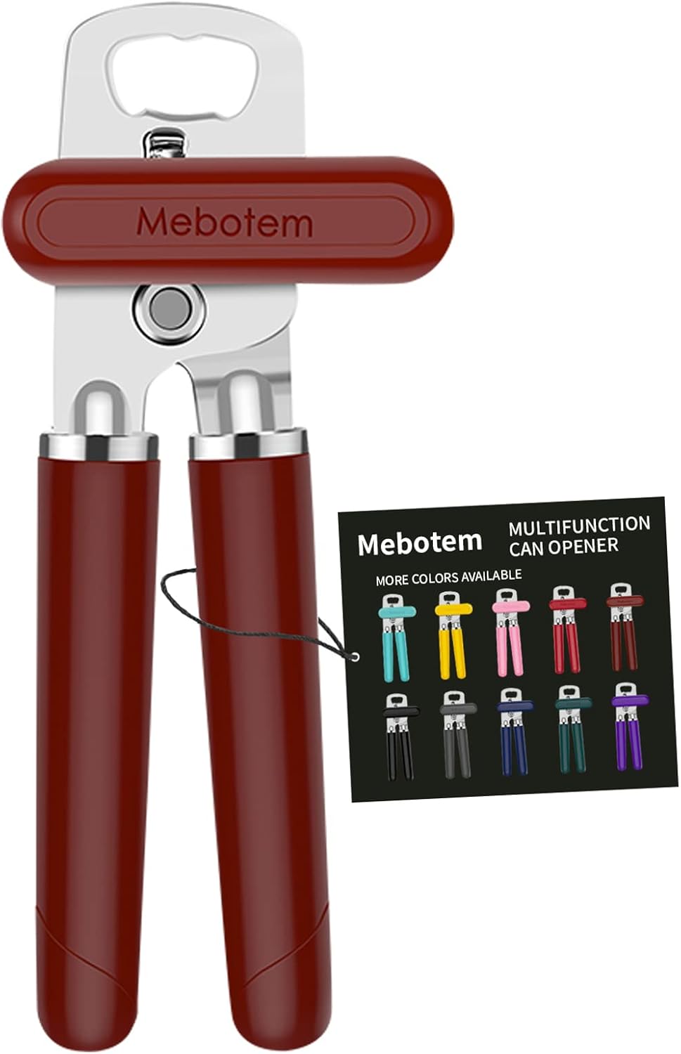 10 Colors Can Opener Manual Handheld Heavy Duty Hand Can Opener Smooth Edge Stainless Steel Can Openers Top Lid Kitchen Gadgets, Best Large Rated Easy Turn Knob, with Bottle Opener, Burgundy