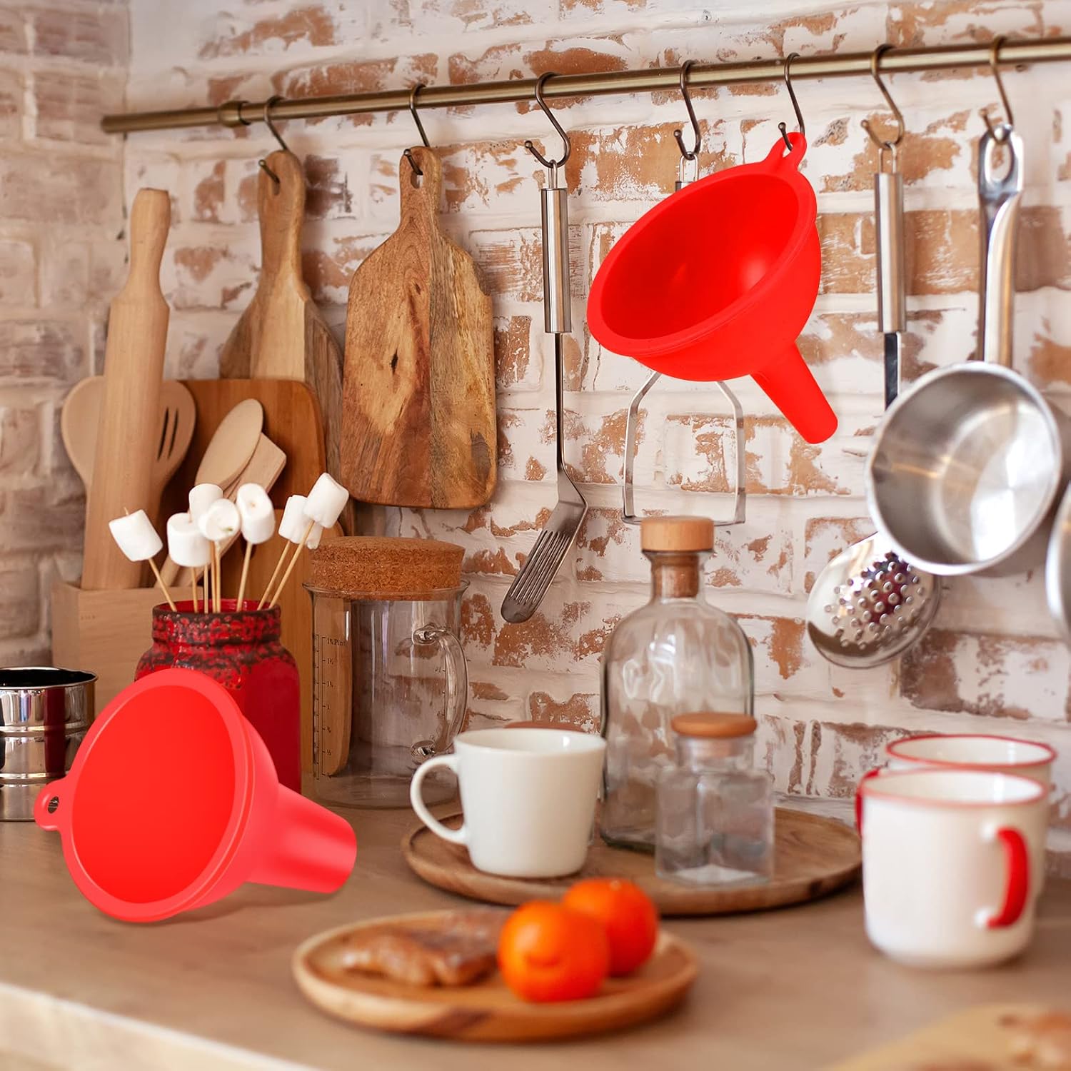 - Hanging Design: you can put the tiny funnel in the drawer or hang the silicone funnel on the wall by the hole, which will save more kitchen space for you, and you can easily take it down or hang it on the wall, decreasing your housework trouble, and you can use them for a long time