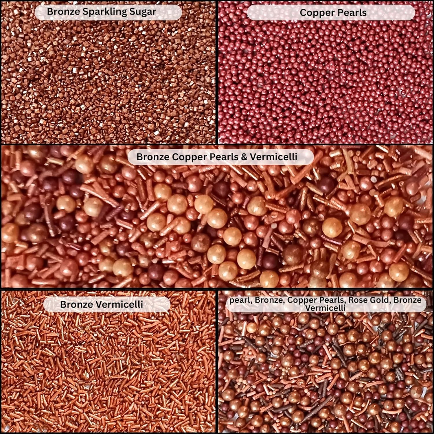 Confect Metallic Sprinkles Mix –Edible Pearl Dragees in Copper, Bronze & Rose Gold – Jimmies & Sparkling Sugar – Elegant Sprinkles for Cake & Cupcake Decorating- Vegan, Gluten-Free, Nut-Free, Soy-Free, Dairy-Free, Palm Oil-Free- 5 Oz