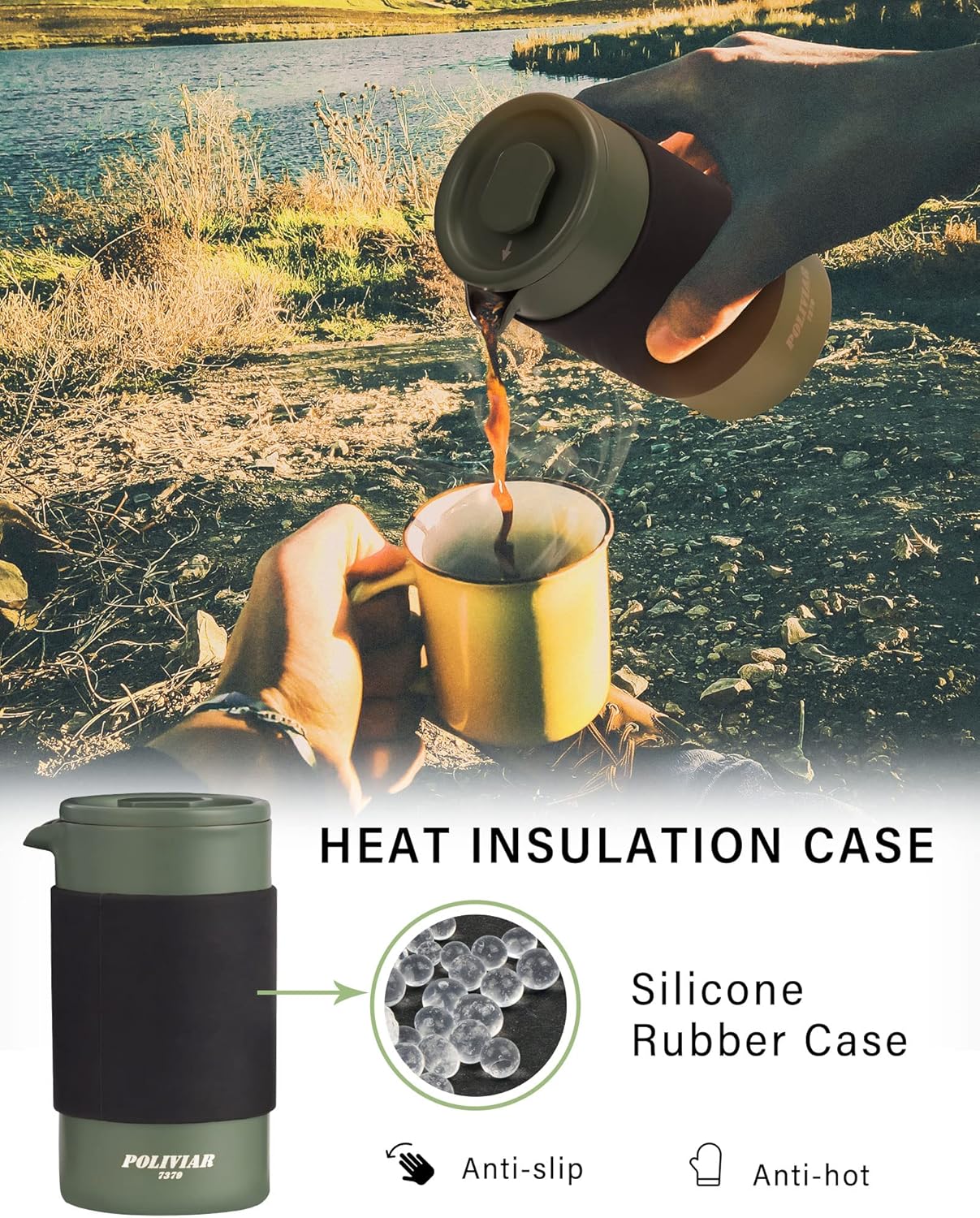 - NEVER BURN YOUR HANDS - Silicone rubber case on the body of french press prevents your hand from burning and avoids slipping, protecting user's hands in the process of brewing coffee. The width of french press, which is 2.99-in, and soft rubber case will give user a comfortable grip when they pour coffee.