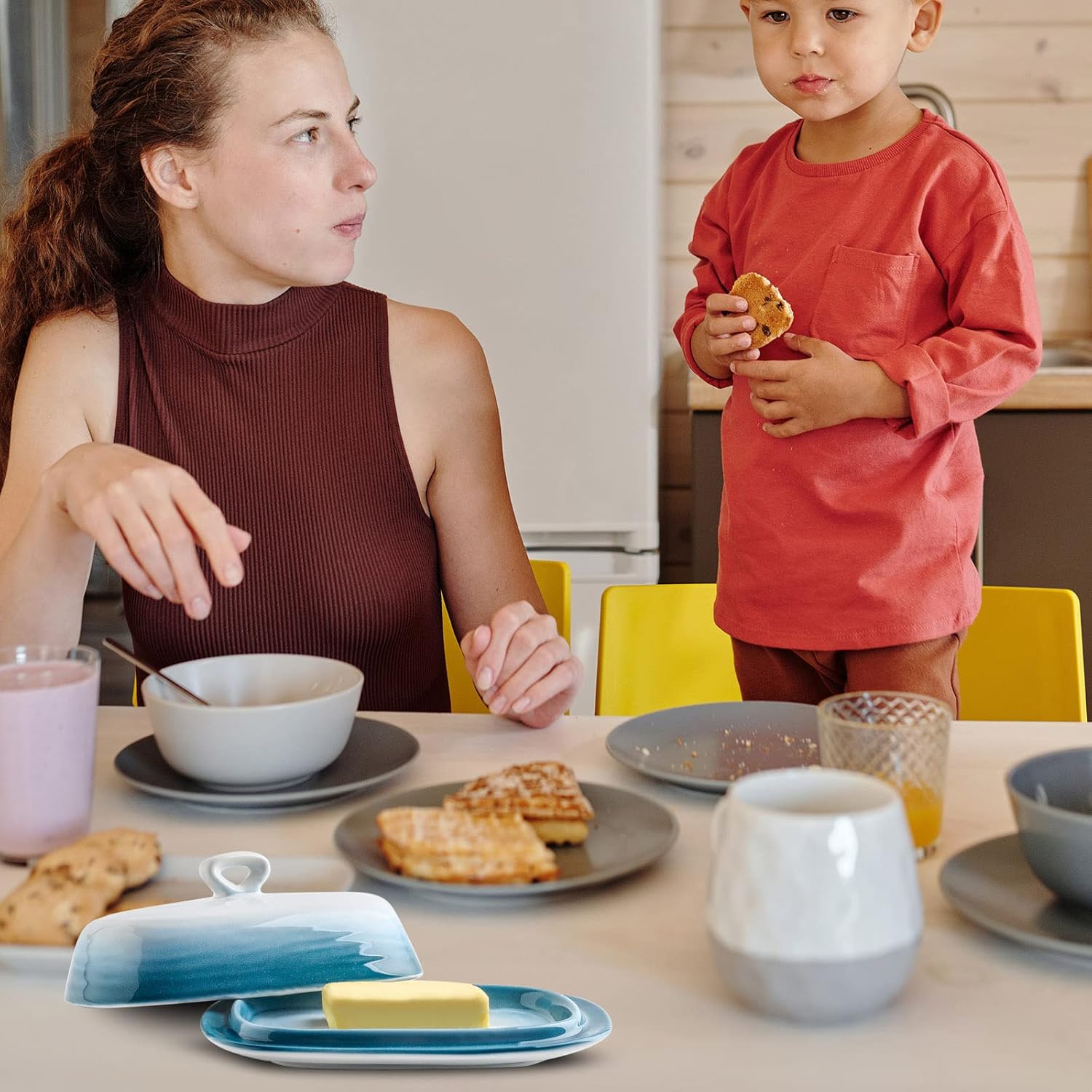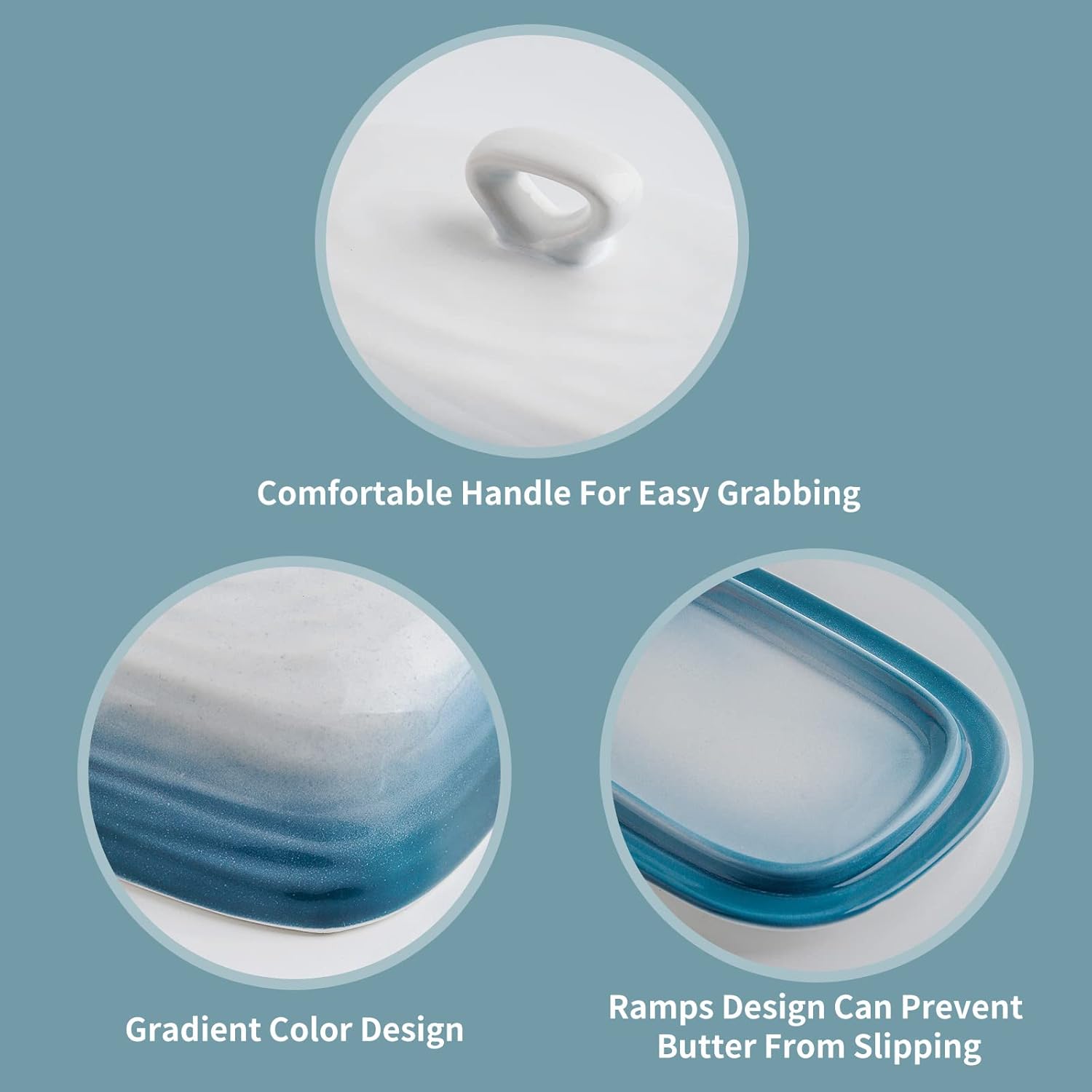 - STYLISHNESS AND ELEGANCE: The simple and lovely design of the butter dish with cover can create a sleek and elegant atmosphere on any countertop. The cute rounded edges and unique gradient color of the butter dish lid add vivid elements to your boring table.