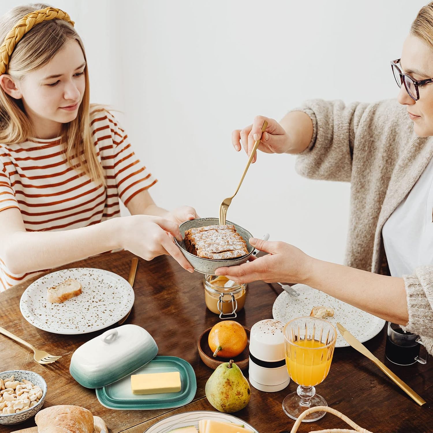 Hasense Butter Dish with Lid, Ceramic Butter Dish with Cover for Countertop, Porcelain Butter Keeper Holder with Handle Design for East West Coast Butter, Butter Tray with Lid for Fridge, Green