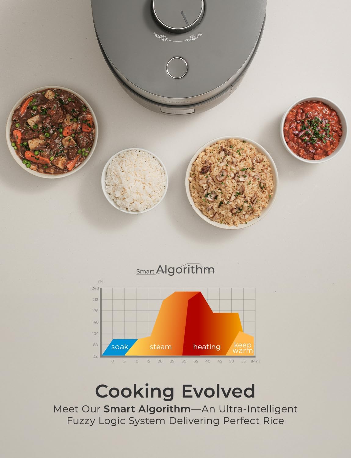 - Dual Cooking Pressure Selections: Choose between high-pressure and non-pressure cooking for sticky or fluffy rice