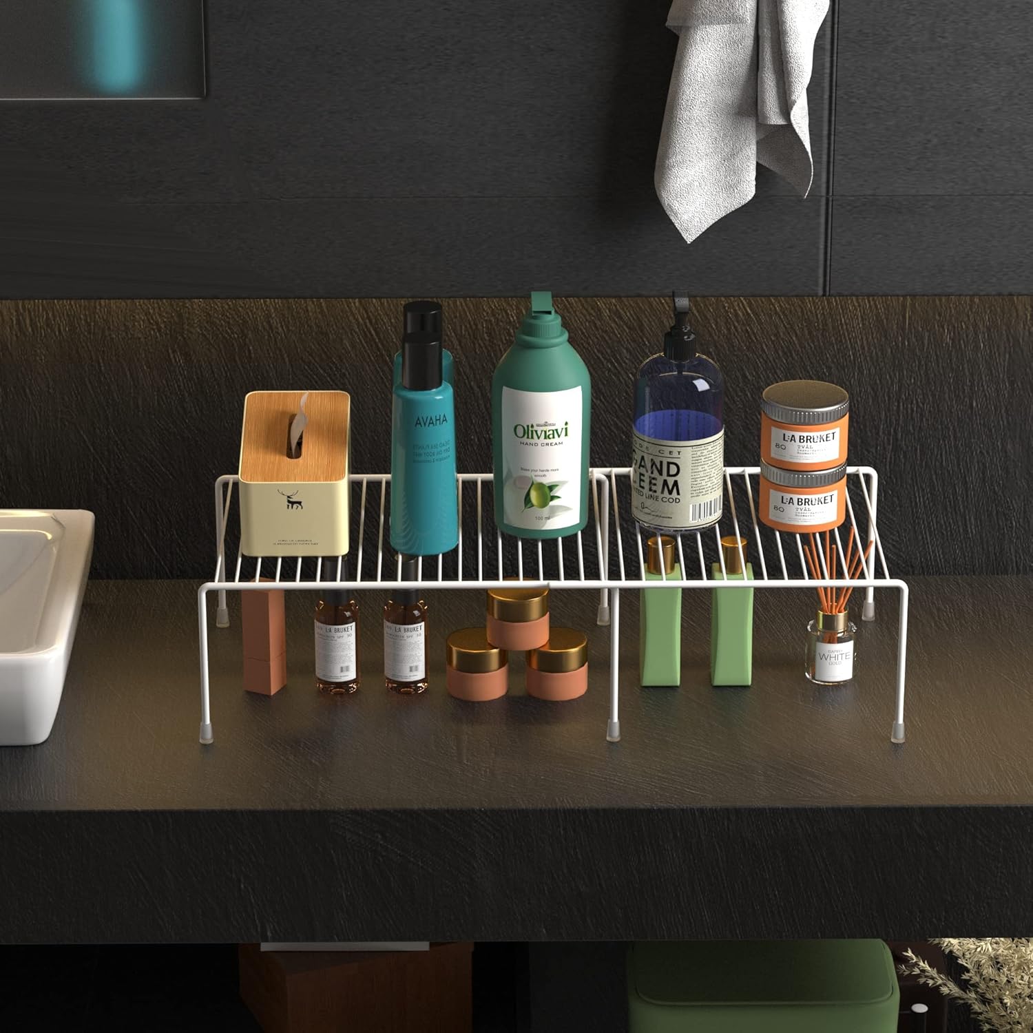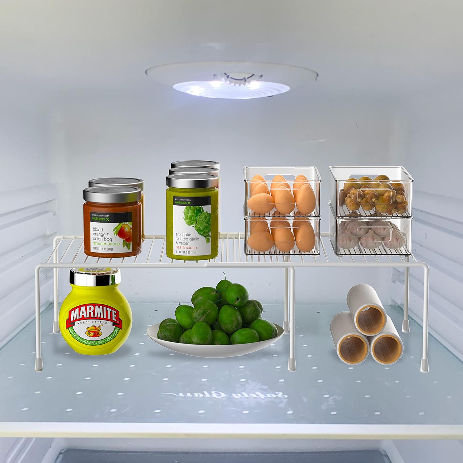 Redrubbit Cabinet Storage Shelf Rack, Expandable Metal Rustproof Kitchen Counter and Cabinet Shelf, Storage Rack Organizer Space Saver for Kitchen, Fridge, Cabinet, Bathroom, White, Set of 4
