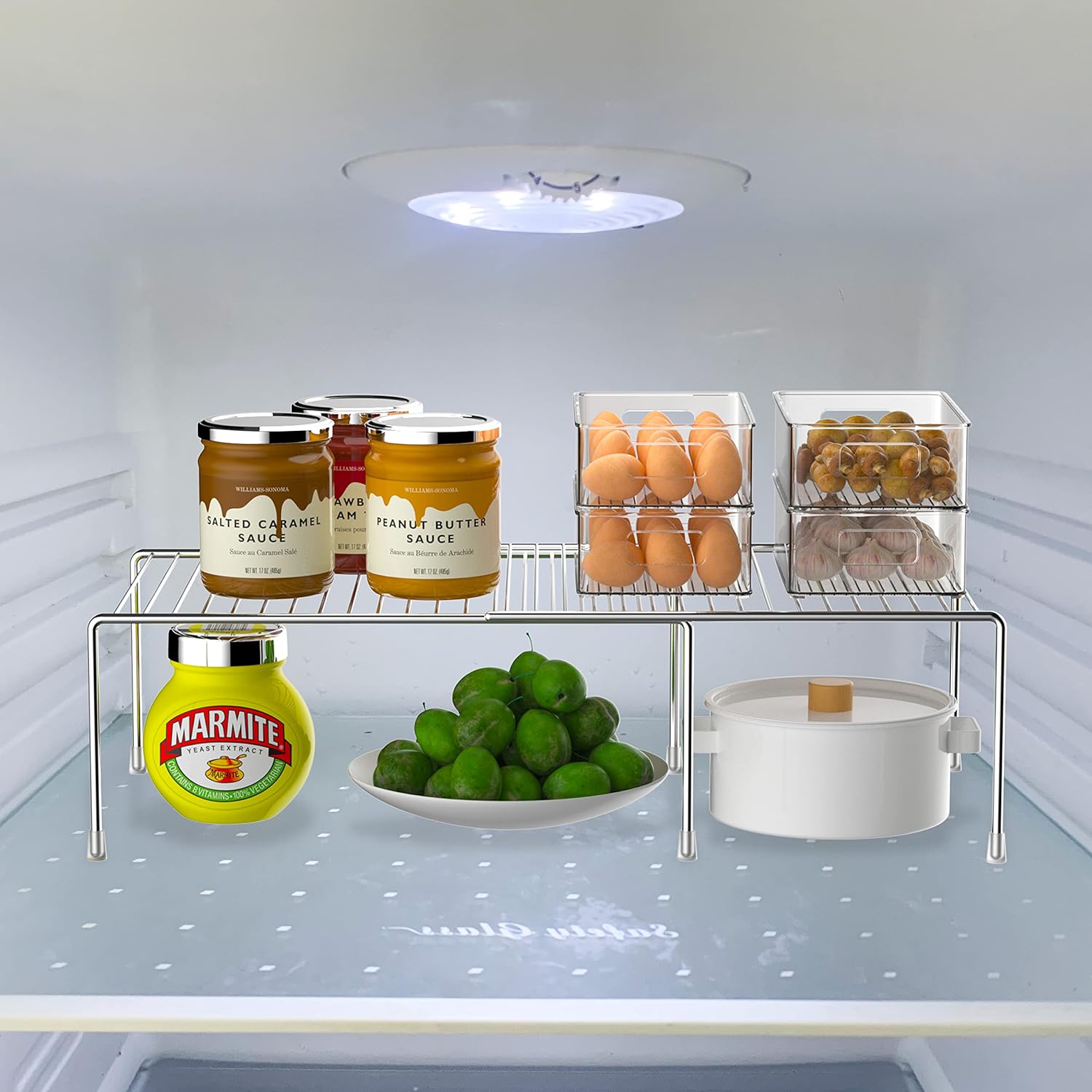 Redrubbit Cabinet Storage Shelf Rack, Expandable Metal Rustproof Kitchen Counter and Cabinet Shelf, Storage Rack Organizer Space Saver for Kitchen, Fridge, Cabinet, Bathroom, Chrome, Set of 4
