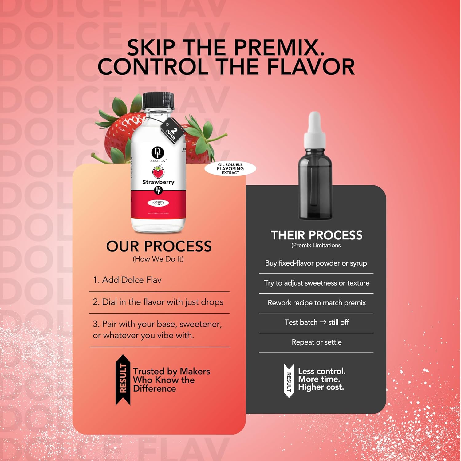 - Pure Strawberry Extract for Baking Delights: Elevate your baking creations with our strawberry flavoring. A quintessential ingredient for delightful strawberry shortcake, cookies, and pastries, it infuses your recipes with a fresh, fruity essence. Perfect for adding a strawberry twist to all your baking favorites.
