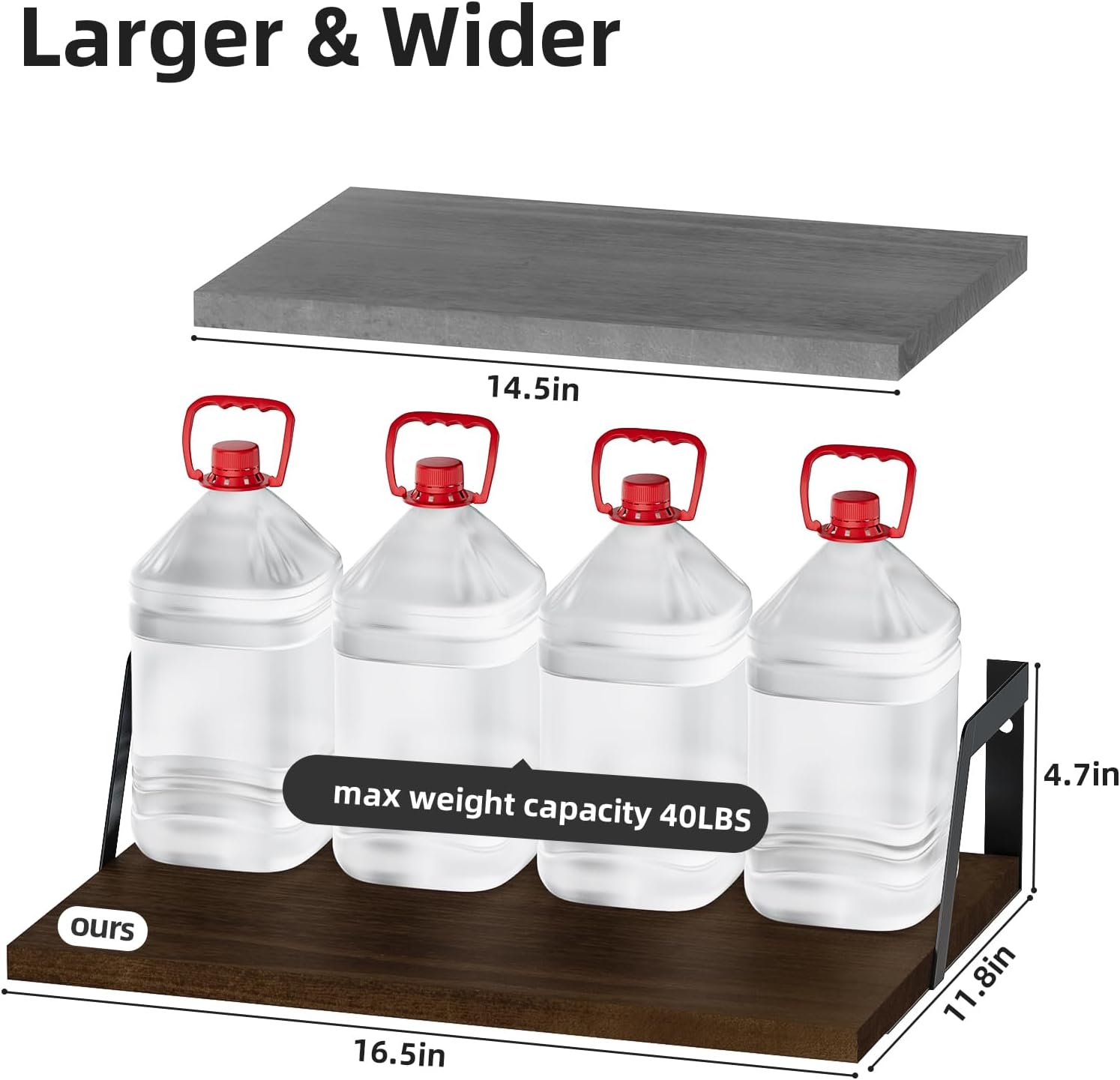 - Large Capacity & Durability: Large floating shelf measuring 16.81''L x 12.13''Wx 3.11''H offers more storage space. Shelves made of solid wood and metal are sturdy enough to hold your favorite items.