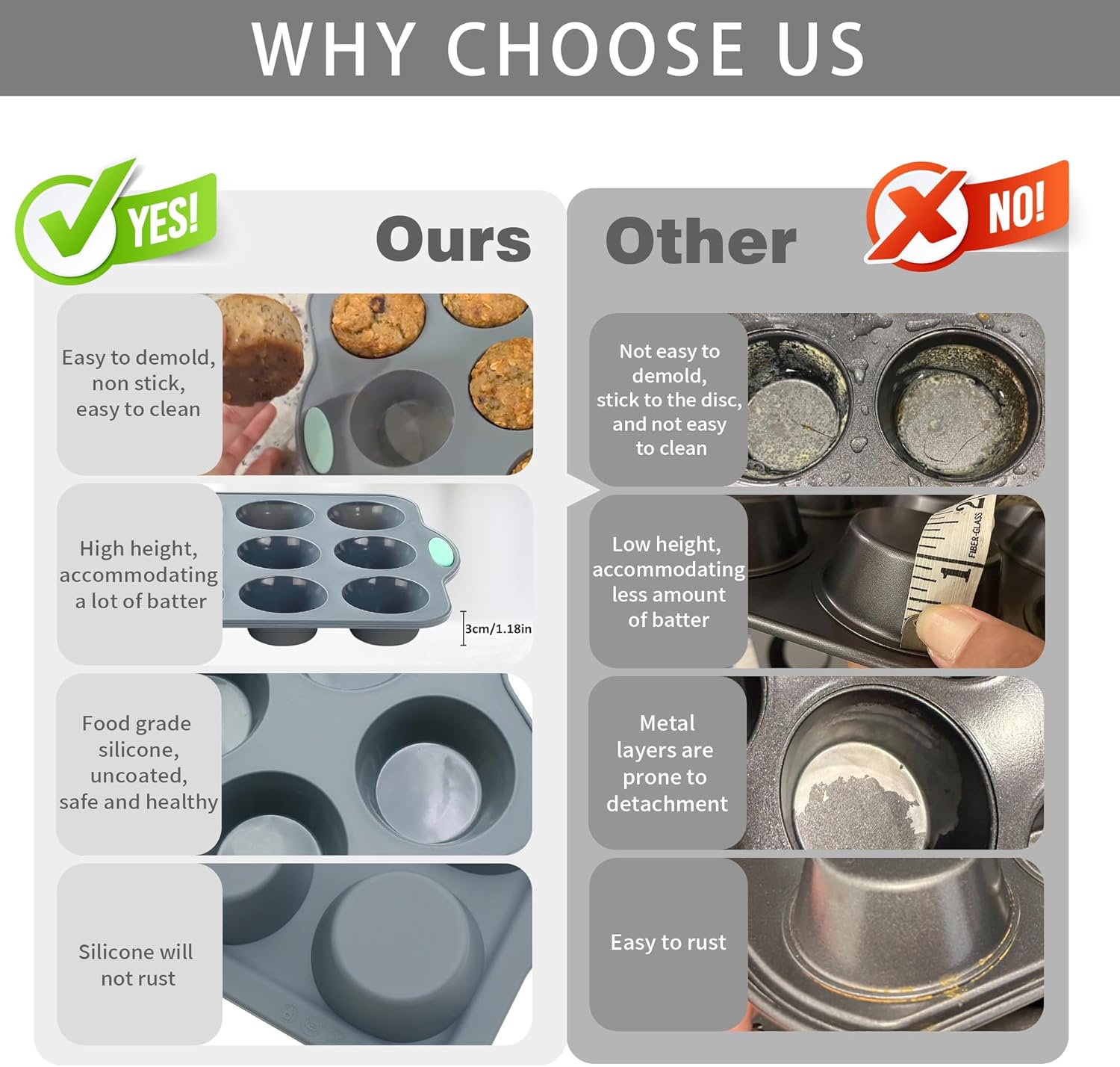 - Set of 2 muffin pans are made of food grade silicone, is more flexible. The baking pan is non-stick and easy to clean. Heat resistant up to 446°F, Dishwasher, Oven, Freezer Safe.