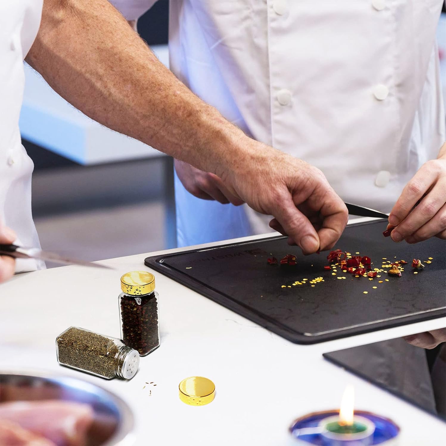 - GOLD PLASTIC LIDS - They provide a tight seal keeping the contents fresh, which snap on securely and can also be removed.