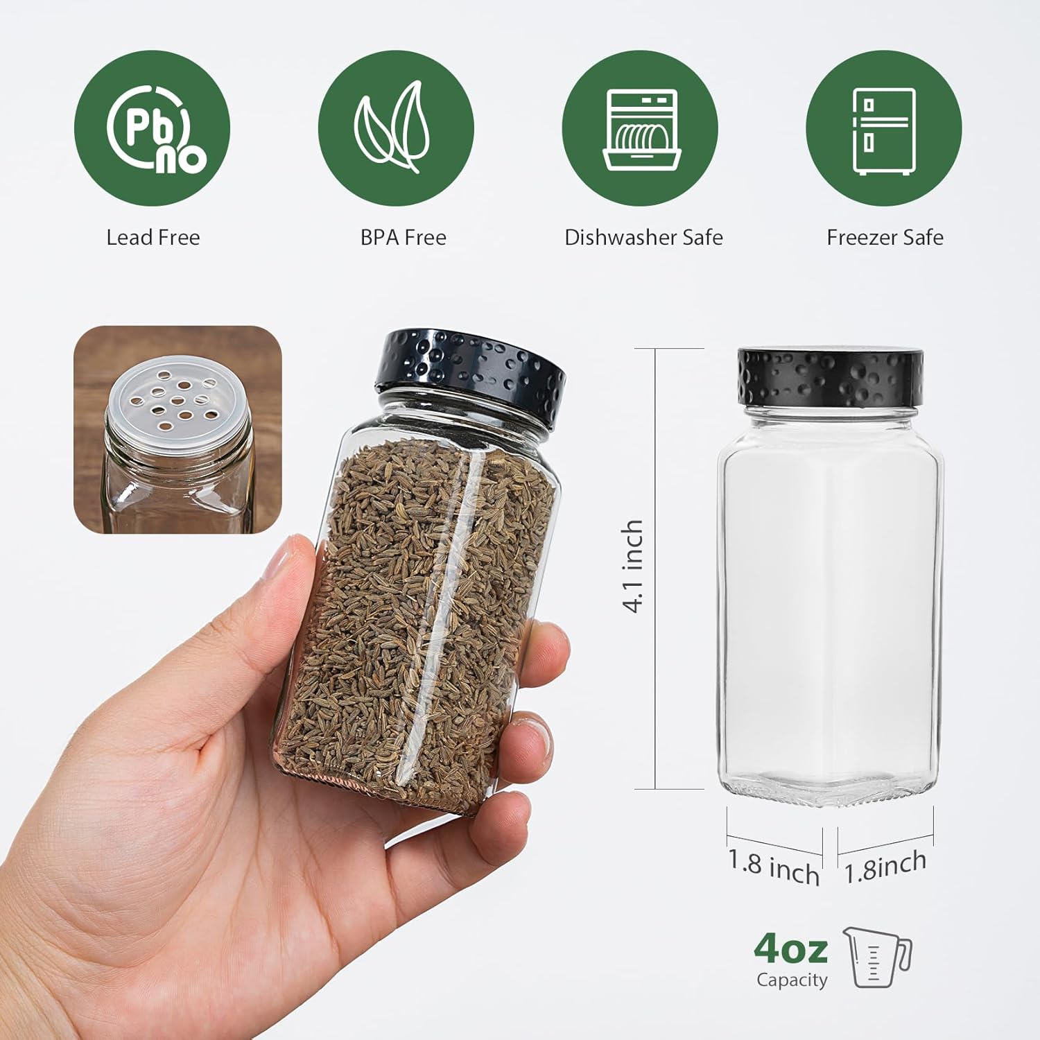 6pcs Black Spice Jars, 4 oz Glass Seasoning Bottles, Spices Container, Empty Spice Jars, Square Spice Bottles with Airtight Plastic Caps with Shaker Lids