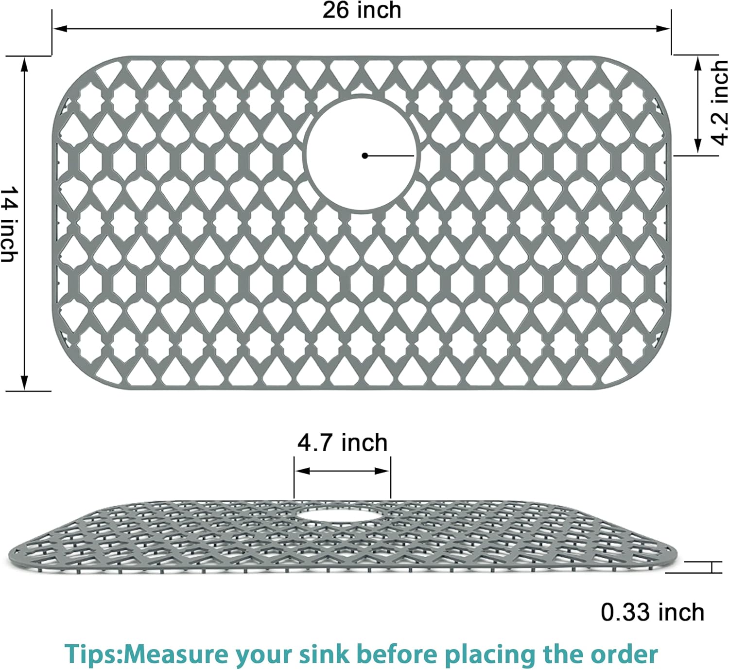 Sink Protectors for Bottom of Kitchen Sink 13x11 &16x12 &19x14 &21x16 &22x13 &24x13 &28x14 &30x16, Large Farmhouse Silicone Mats Grid (26”x14”, Rear Drain)