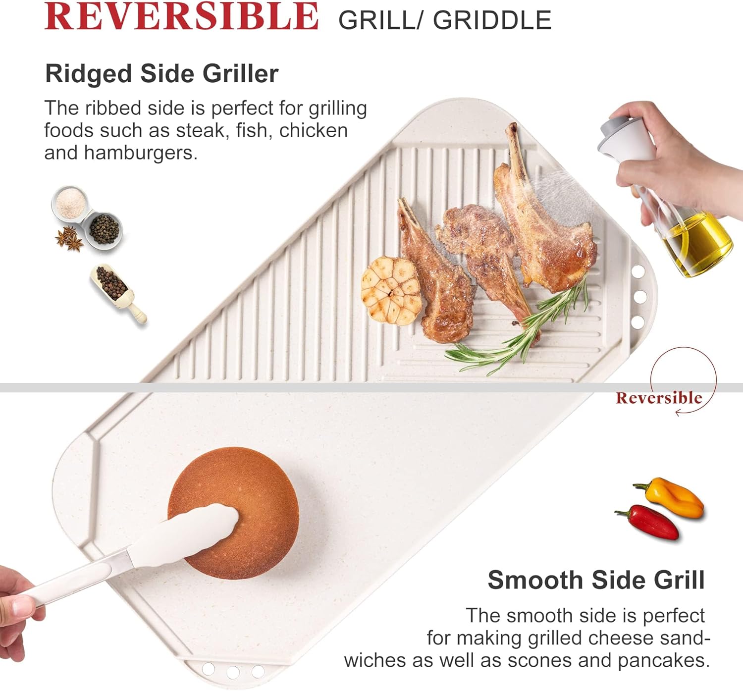 - Caannasweis Cookware Set: It comes fully equipped with a wide array of kitchen tools. Whether you're preparing simple daily meals or hosting a grand family gathering, this set can handle it all with ease. The meat cooked on the ridged edge of the griddle has unique grill marks, which are just like the feeling of a summer camping trip.