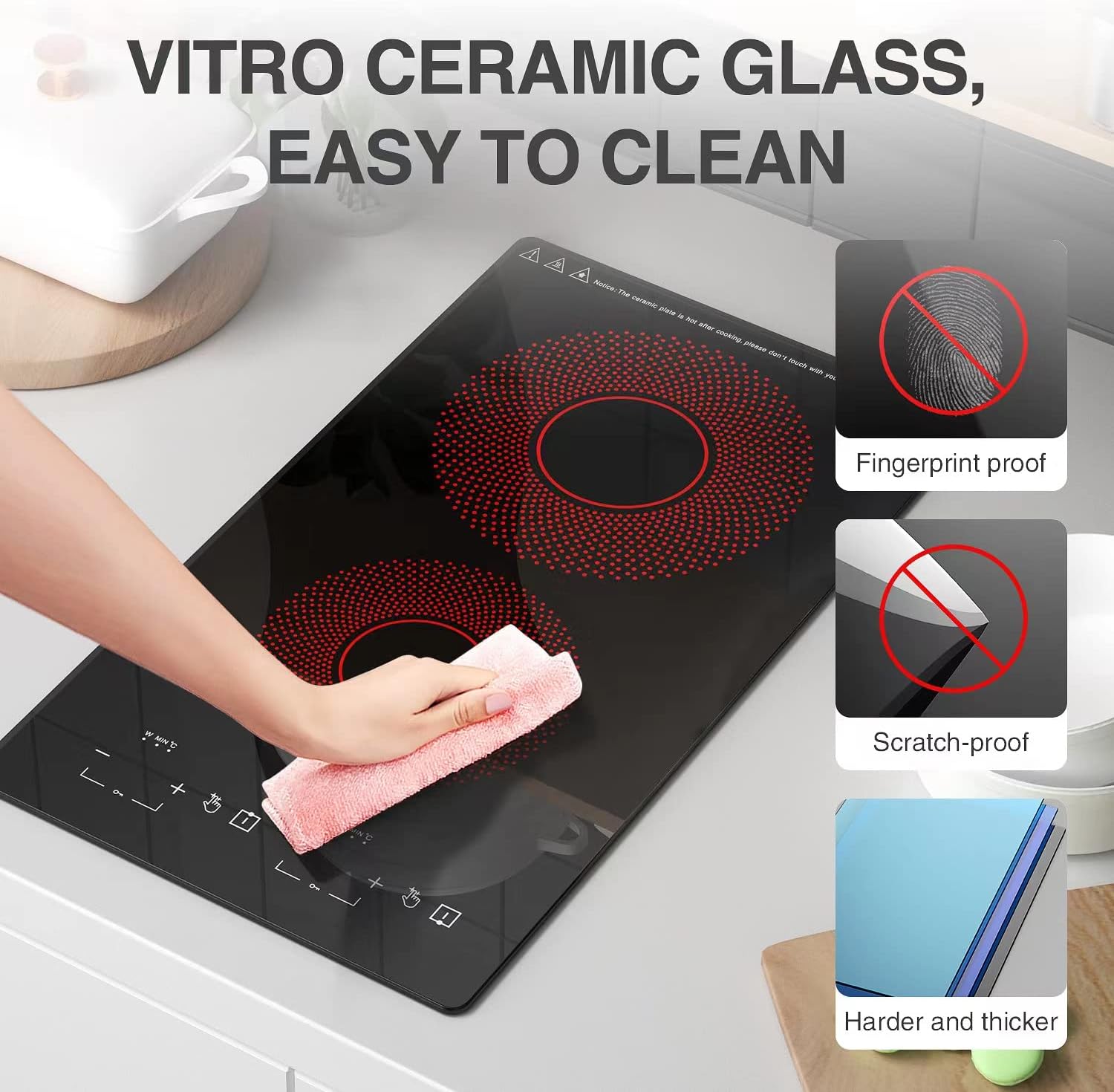 - Compatible with All Cookware Countertop Stove β Unlike induction cooktops, this radiant electric cooktop works with any flat-bottom cookware including stainless steel pans, aluminum pots, ceramic, glass, copper, and cast iron skillets. Simple installation and an included manual make setup quick and easy for everyday cooking needs