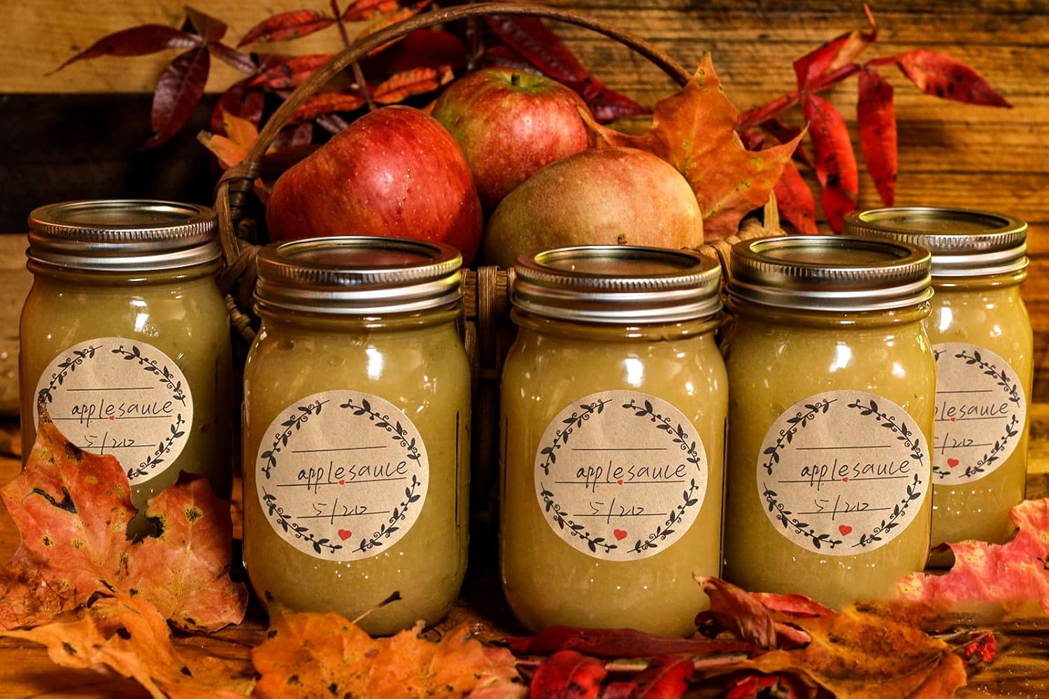 500pcs 2" Label Stickers for Jars and Lids, Wreath Design with 3 Lines for Writing, Kraft Sticker Labels Pantry Labels, Mason Jar Labels Canning Labels Bottle Labels