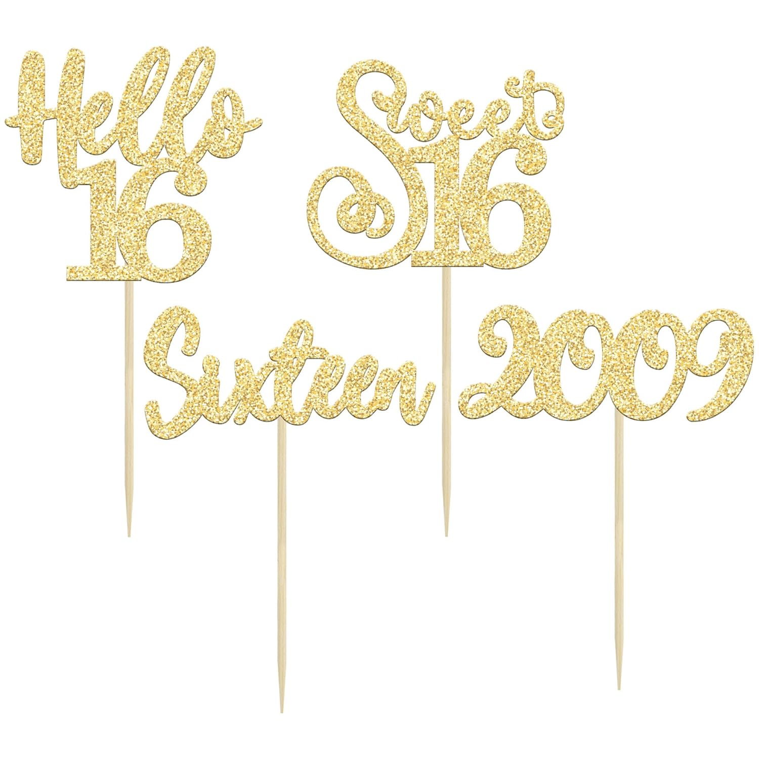 Gyufise 24pcs Sweet 16 Cupcake Toppers - Gold Glitter, Hello 16, Cupcake Picks, Cake Decorations for 16th Birthday Party Supplies