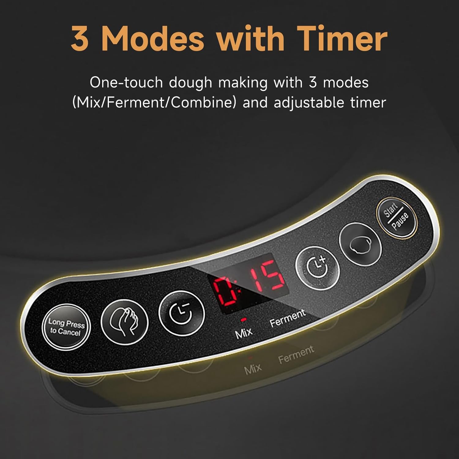 - Smart & Useful: Dough maker machine is controlled by microcomputer, which allows for time presetting and intelligent selection of programs. It can simulate natural and manual dough making(mixing blade will turn and stop), and automatically finish chewy dough, saving labor and time. Make your baking easier