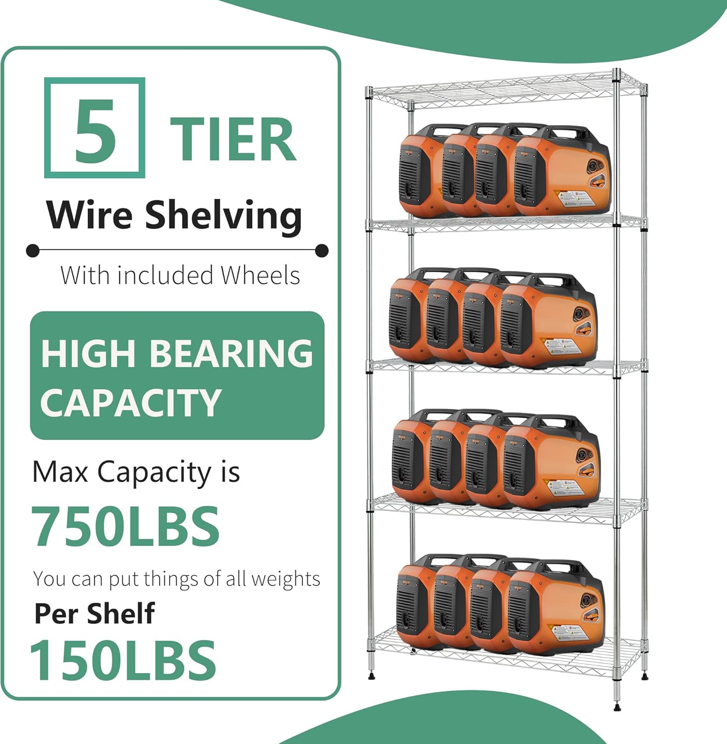 - ✔【Sturdy Leveling Feet】 This 5-tier storage shelving unit is supported by sturdy leveling feet. Its non-slip grip provides durable positioning for stable storage space.