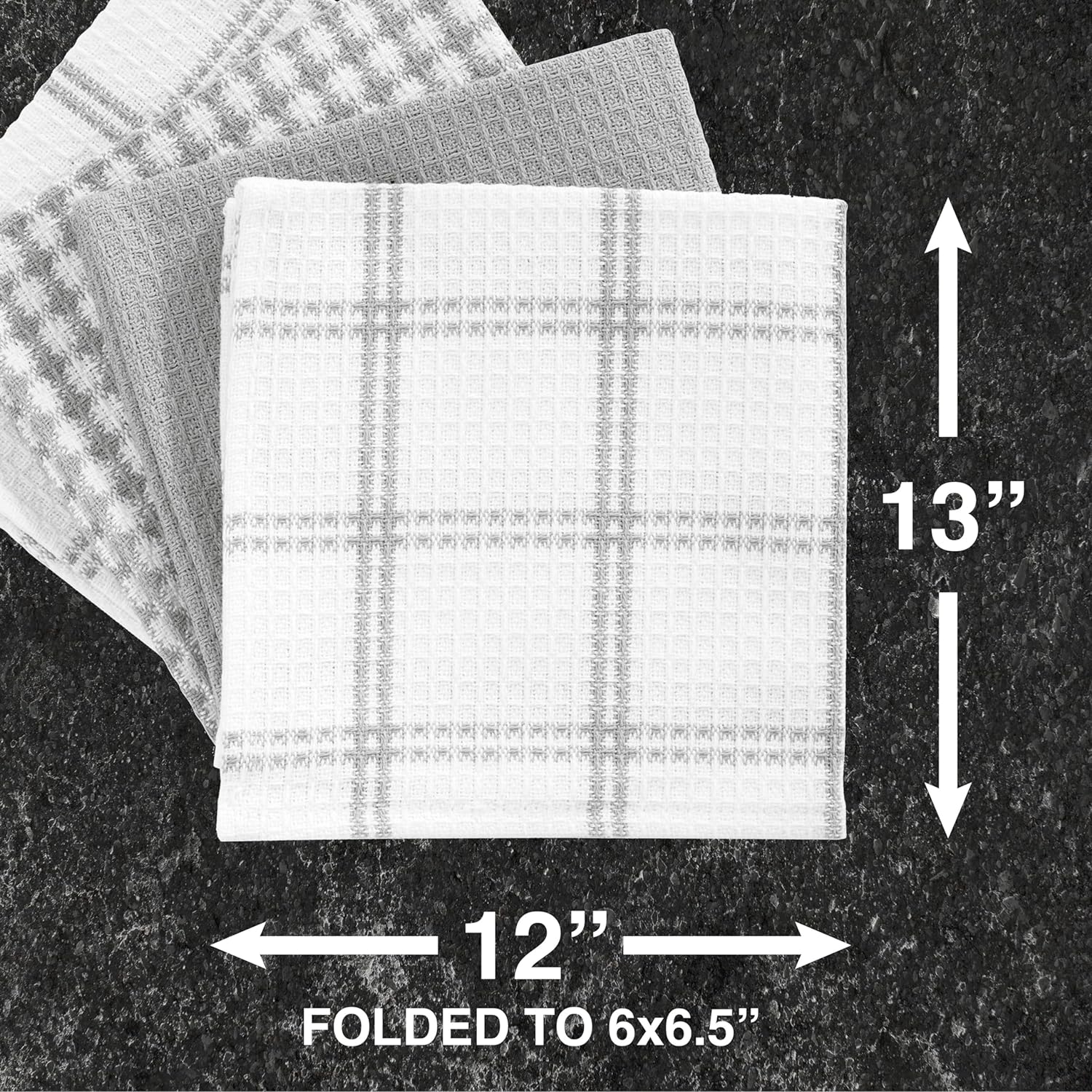 T-fal Premium Waffle Dish Cloths: Highly Absorbent, Super Soft Long Lasting - 100% Cotton, 12"x13" Towel for Cleaning & Drying, (8-Pack), Gray