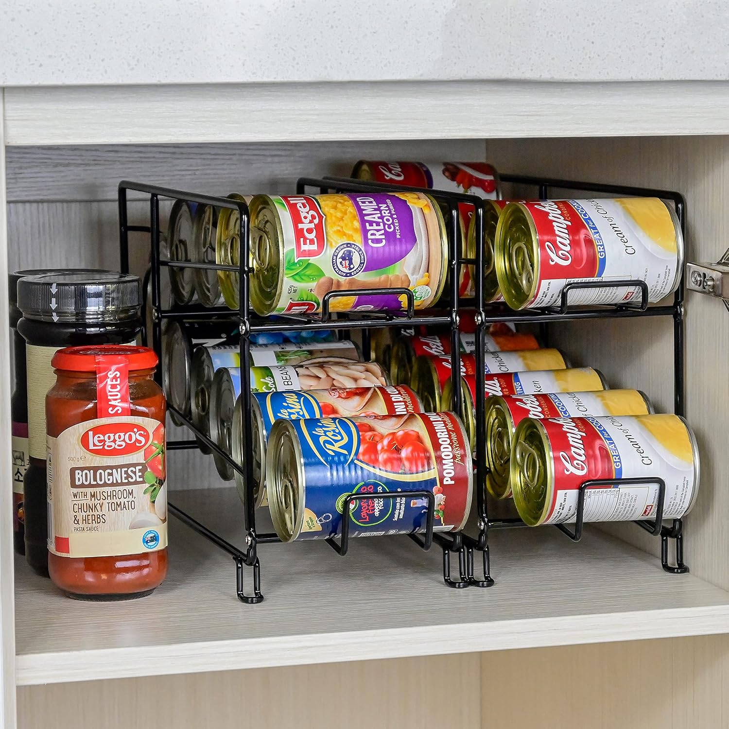- The functional design is praised for allowing smooth rotation of cans, ensuring that the oldest cans are used first