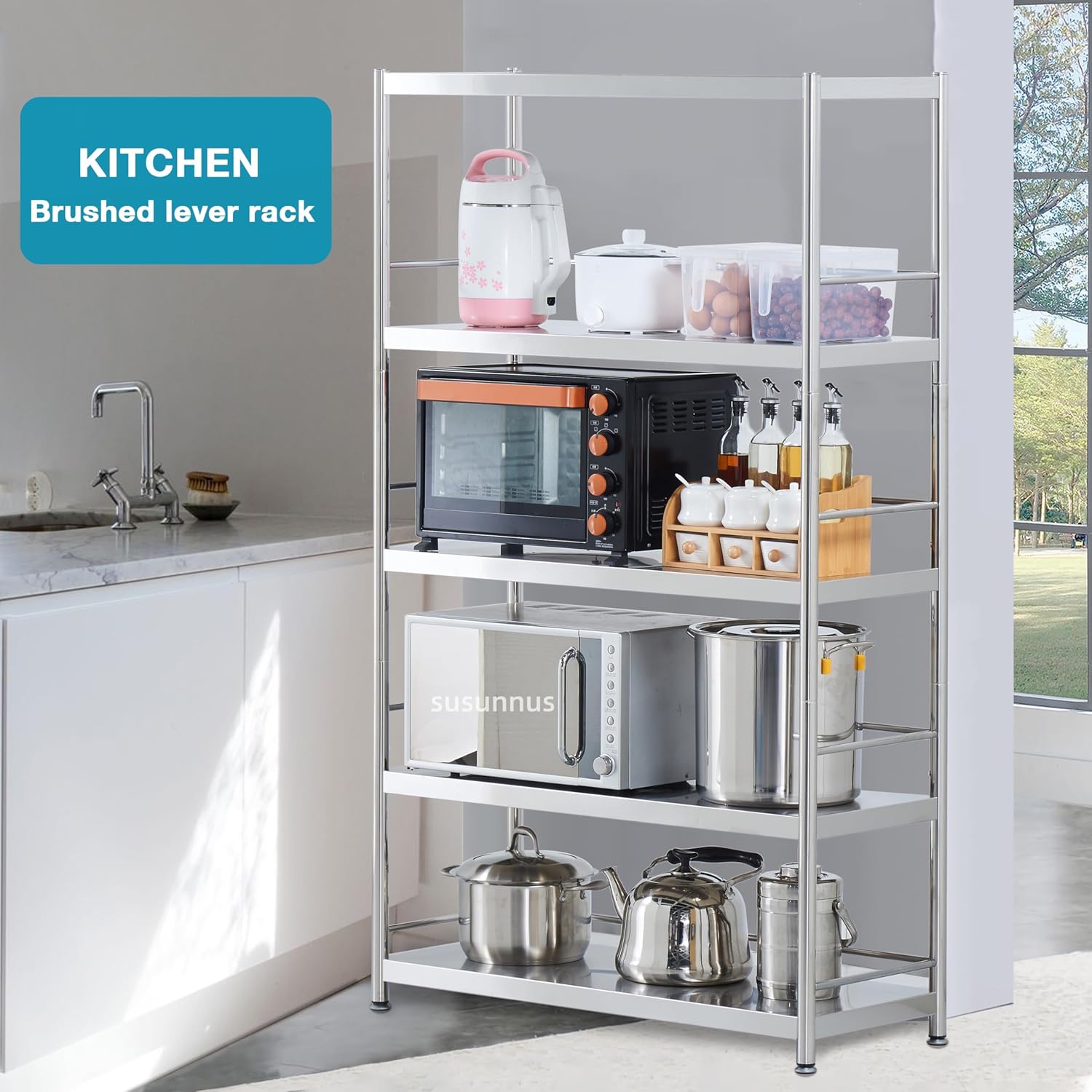 - Heavy Duty Shelving:Open large stainless steel shelving, multi-layer storage space. Kitchen use scene, place a variety of household appliances, tableware; warehouse use scene, place a variety of large industrial supplies