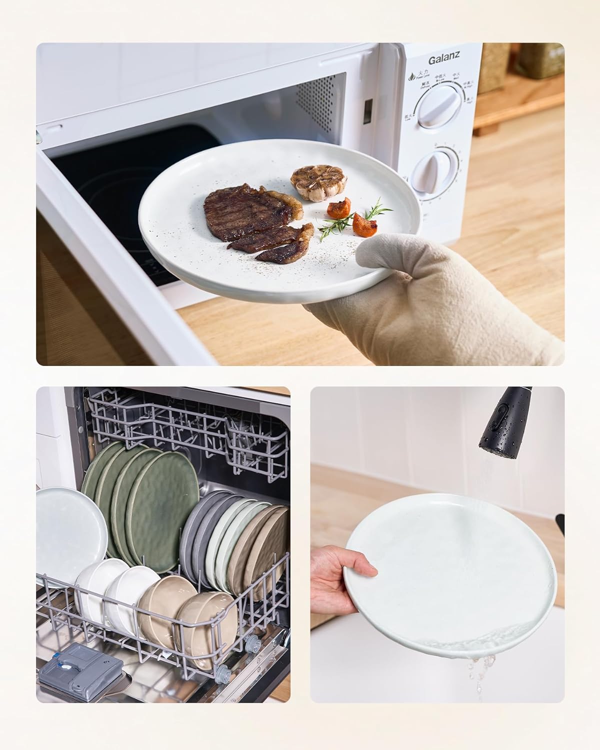 - ăWhat will you get?ăThis dinnerware set includes 4 pieces 10.25 inch dinner plates, 4 pieces 8 inch salad plates, 4 pieces 5.5 inch cereal bowls. This is a great combination for a family dinner party. You can safely use them to serve steaks, salads or desserts.