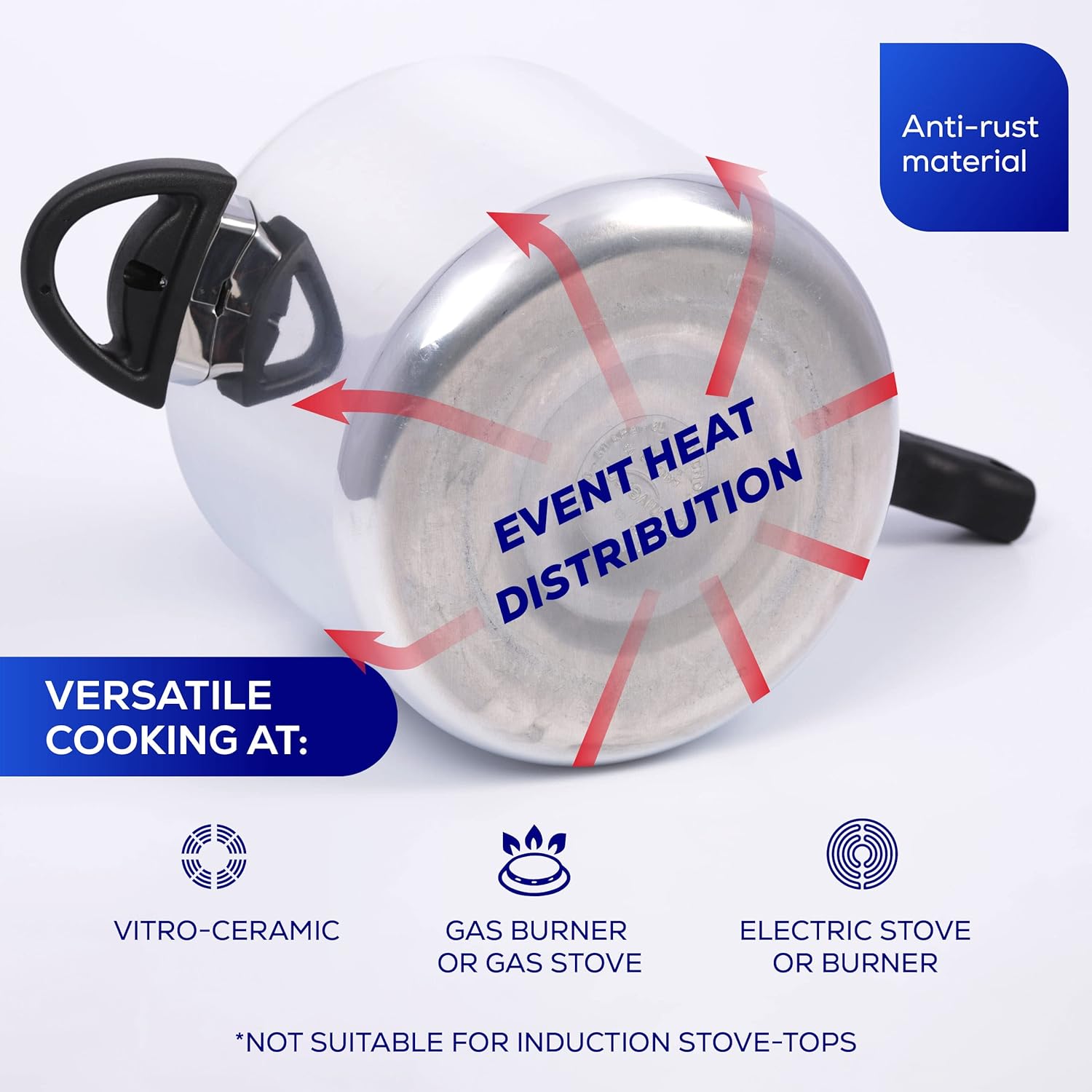 - Durable 6.3 Qt Aluminum Pressure Cooker β Inner Lid System for Secure Sealing: This high-quality 6.3 Qt (6L) aluminum pressure cooker features a traditional inner lid closure system for safe and efficient cooking. Its heavyweight build ensures stability at 11.60 PSI (80 kPa) with extra safety mechanisms. IMPORTANT: To insert the lid, align the lid arrow with the body handle, tilt and slide it in, turn the handle, place it on the pivot, squeeze both handles together, and adjust for a perfect seal.