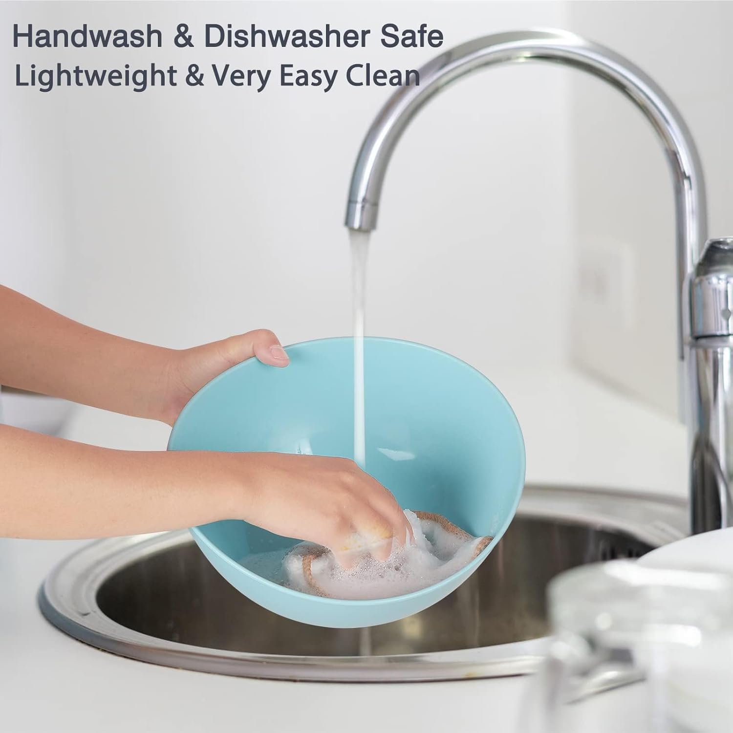9.6'' Serving Bowls, Bamboo Fiber Salad Bowls Set of 4, 2.6Qt/84 Ounce, Large Bowls for Kitchen,Curvy Shape Big Deep Bowl for Salad,Vegetable,Fruit,Cereal, Lightweight & Easy to Clean(Multi Turquoise)