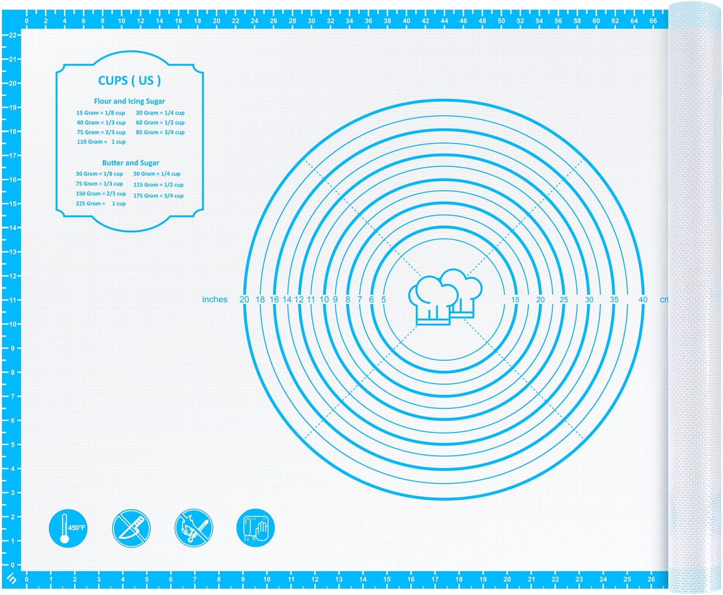 Silicone Baking Pastry Mat,36" x 24" Large Non Stick Sheet Mat with Measurement, Non-slip Food Grade Dough Rolling Mat for Making Cookies,Macarons,Bread