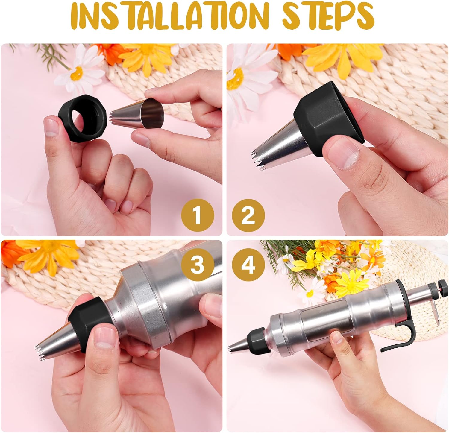 - 【Practical & Easy to Use】This icing dispenser is made of a combination of stainless steel and plastic, so you can disassemble all the parts for easy cleaning(the cake decorating injector kit comes with a cleaning brush) and use. Our cake decorating icing tool set can as a gift for baking lovers on birthdays, Christmas, Mother's Day, Easter, housewarmings, or other occasions; You will find that the most incredible buttercream flowers are so easy to make with this icing gun