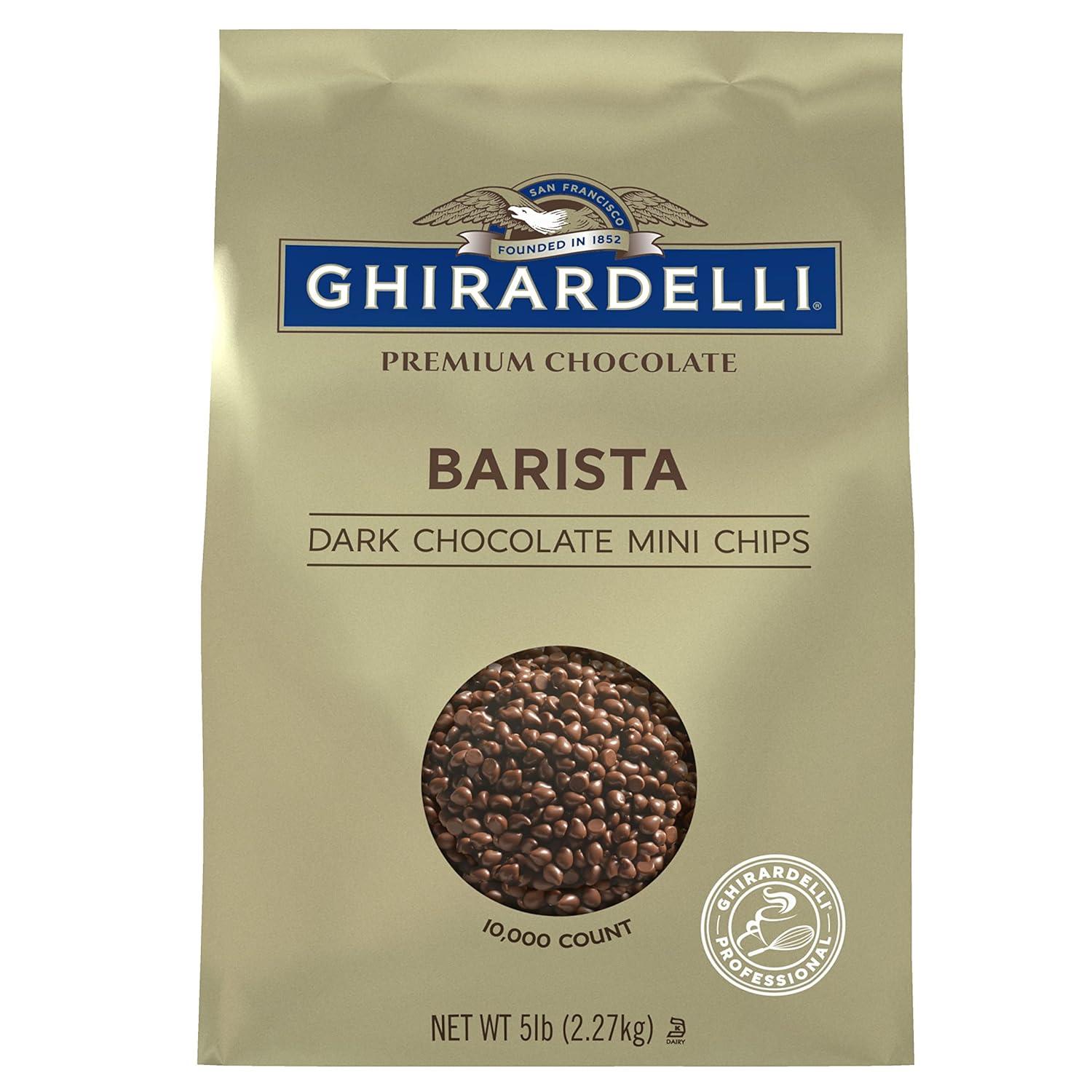 Ghirardelli Chocolate Company Dark Chocolate Barista Mini Chips 10,000 per lb, 5lb. Bag (Pack of 1)