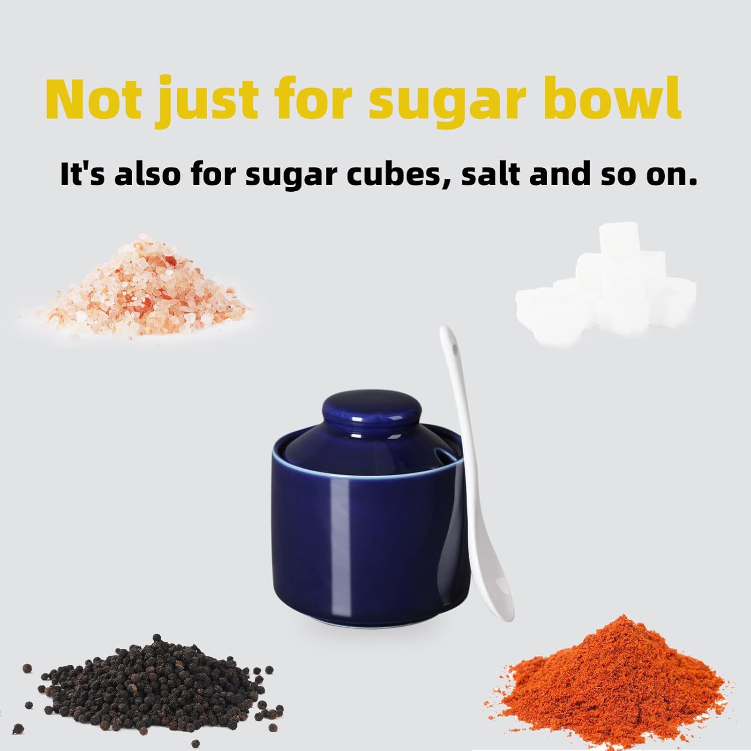 ONTUBE Ceramic Sugar Bowl with Lid and Spoon,Porcelain Seasoning Box Salt Bowl,8oz (Navy)