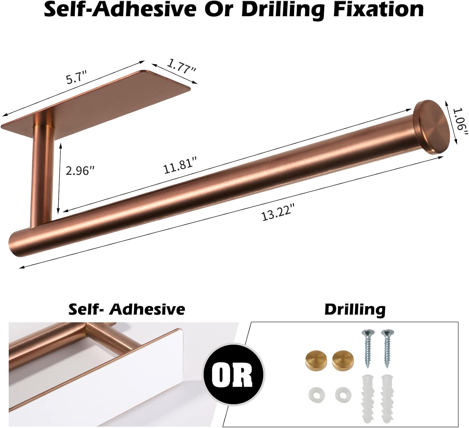 theaoo Rose Gold Paper Towel Holder - Under Cabinet Paper Towel Holder for Kitchen, Adhesive Paper Towel Roll Rack for Bathroom Towel, Wall Mounted Paper Towel Rack, SUS304 Stainless Steel